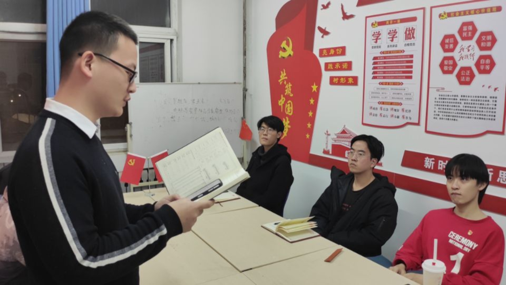 为深入学习十九届六中全会精神,感悟党百年来取得的伟大成就,学习党成功的历史经验,本科生第三党支部11月24日晚上在西区十号楼信息公司党员活动室开展“学习十九届六中全会精神”政治理论学习。由预备党员王晓博同志领学,支部党员韩家齐、张云鹏同志,支部发展对象张云皓、李永飞同志,支部积极分子刘同海、邓星宇参加学习活动。