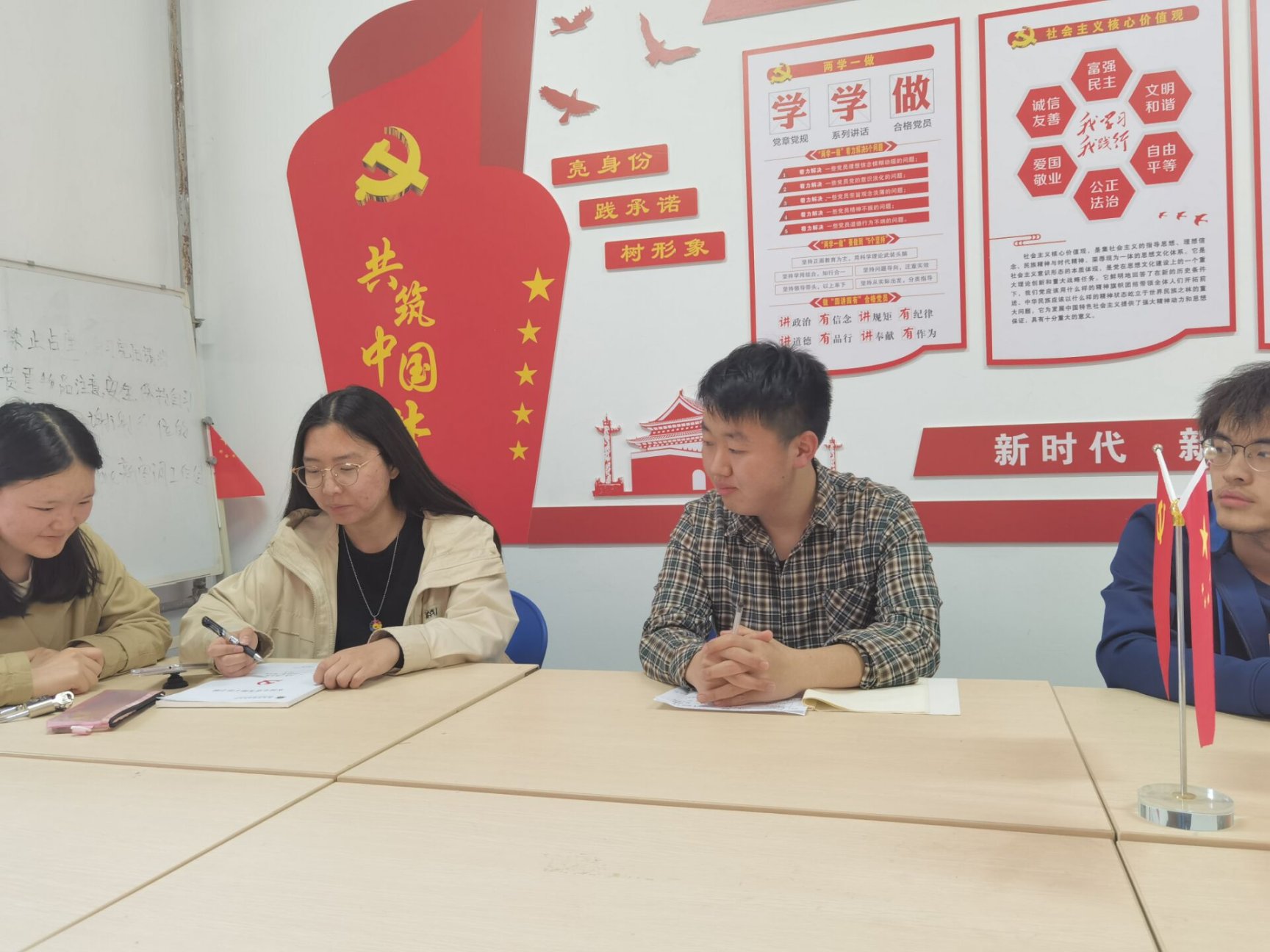 积极分子代表赵婧伊同学首先发表了自己的见解:“中国共产党自建党至今,走过了百年的征程,经过几十年的不懈奋斗,中国共产党从小到大,从弱到强,不断发展壮大。作为党的后备力量,我们要坚决贯彻党的路线,方针,政策,积极向党组织靠拢。在今后的学习和生活中,我们要以身边优秀的党员为榜样,用一个共产党员的标准来要求和鞭策自己。”