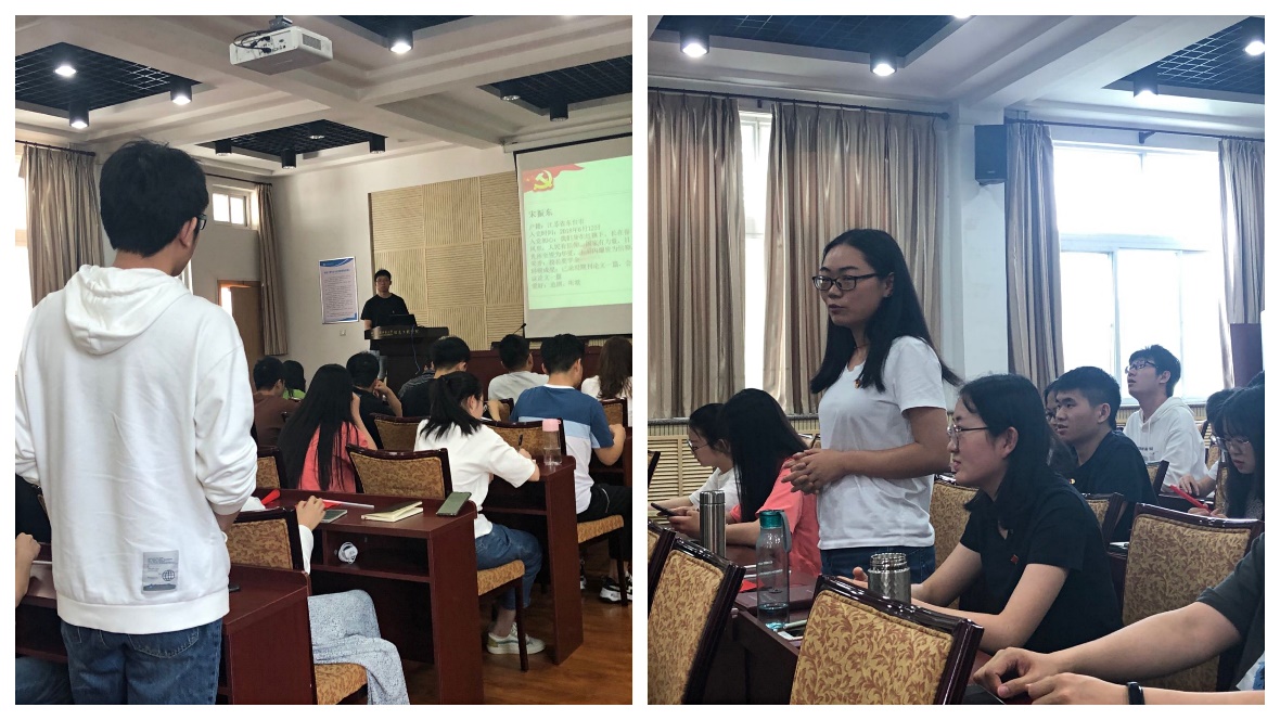 张晶同志将自己的入党感受概括为两个方面:“理想”与“坚持”,她谈到一个人只要有理想并坚持做一件事,才能取得伟大的成就。我们应该时刻坚定理想,努力工作、学习,实现自己的人生目标。王超同志提到作为一名党员应当牢记自己的责任、使命与担当,要不忘初心,努力奋斗,争做一名合格党员。刘荣达同志也从实际出发,谈到美好生活的来之不易,作为研究生党员的我们应当认真科研,踏实提高专业能力,做一个对国家和社会有用的人。