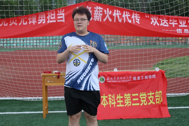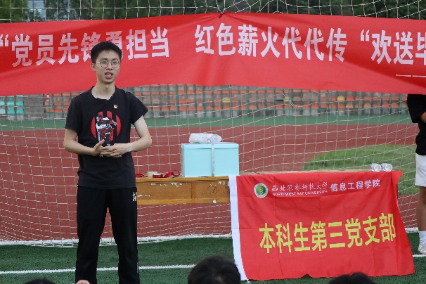 支部书记令阳同志对毕业生表达祝福并提出期望。她勉励本三支部全体毕业生党员同志们怀揣炽热,勇敢奔赴山海,在青春的赛道上跑出最好成绩,努力成为可担大任的时代新人!并要在将来继续加强理论学习,坚定理想信念;牢记“以诚为本、以朴修身、以勇求进、以毅建功,敢于立大志、明大德、成大才、担大任的”的希望与嘱托,践行“诚朴勇毅”校训,弘扬西农精神,继续关心和支持母校的发展。