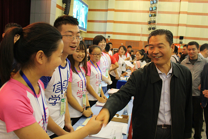 公司党委书记李兴旺书记与同学们亲切握手