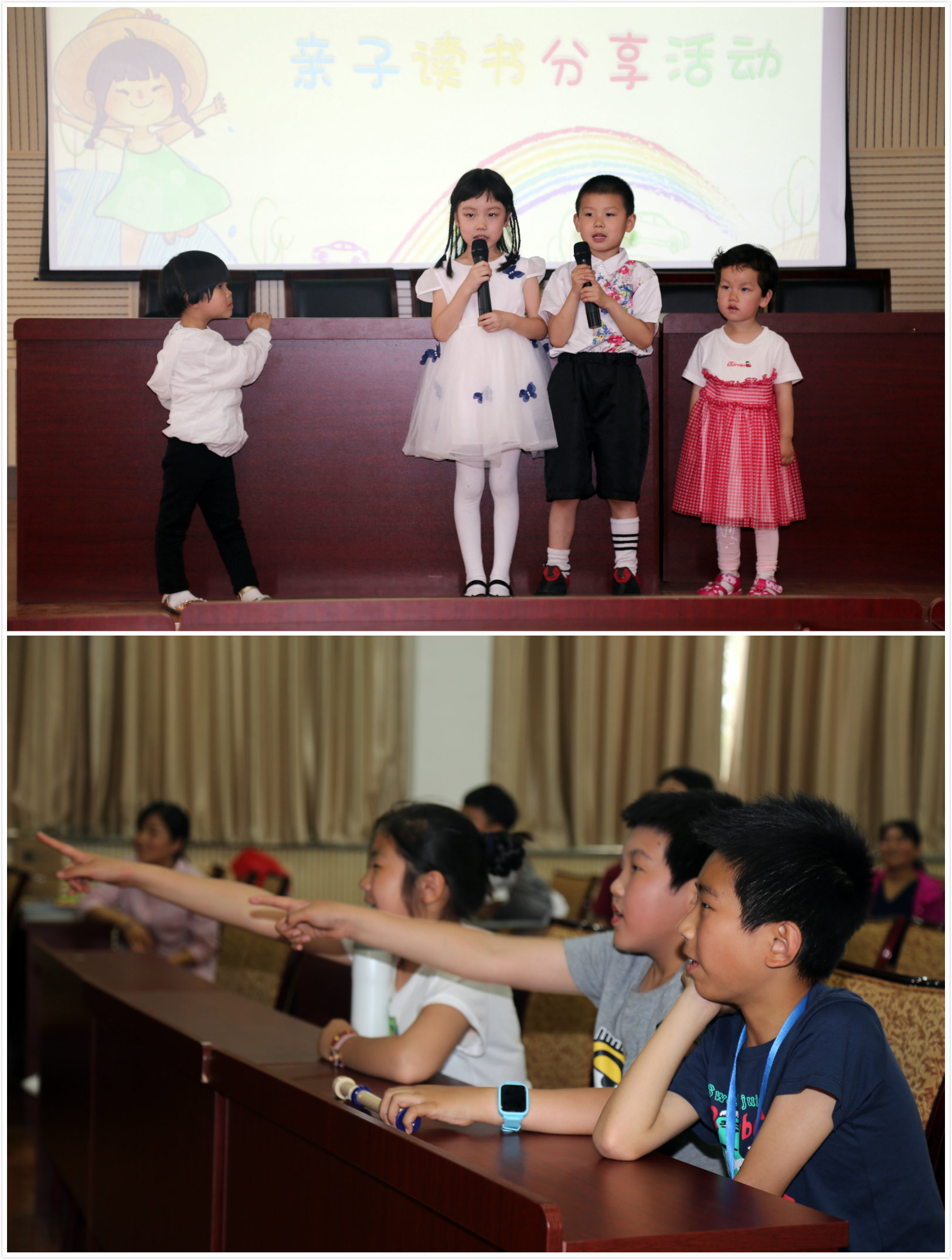 展示完丰富的才艺,孩子们拿起了自己最喜欢的书和爸爸妈妈一起给其他大朋友和小朋友进行分享。稚嫩的童声为大家讲述书中精彩纷呈的故事,展示书中妙趣横生的插图。小朋友们在阅读和分享中开阔视野、增长知识、陶冶情操。