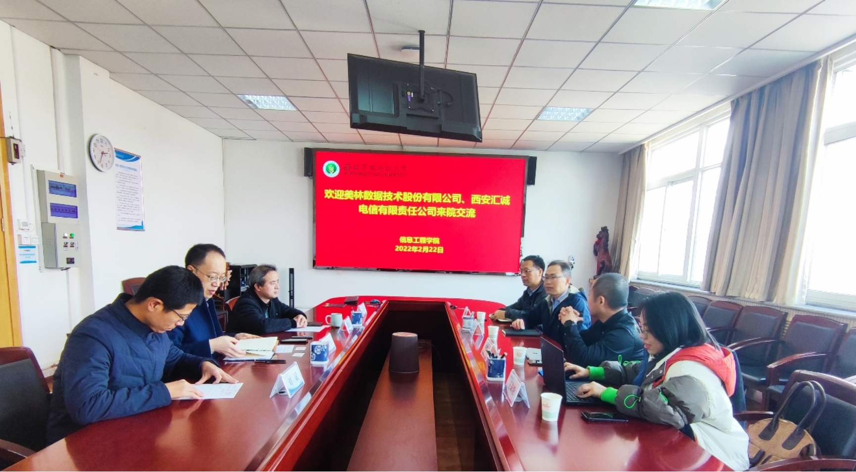 2月22日,美林数据技术股份有限公司副总裁张鹏飞、西安汇诚电信有限责任公司副总经理李勇一行4人来院交流。公司经理张宏鸣、副经理黄铝文、数据科学与工程系主任刘斌参加座谈。