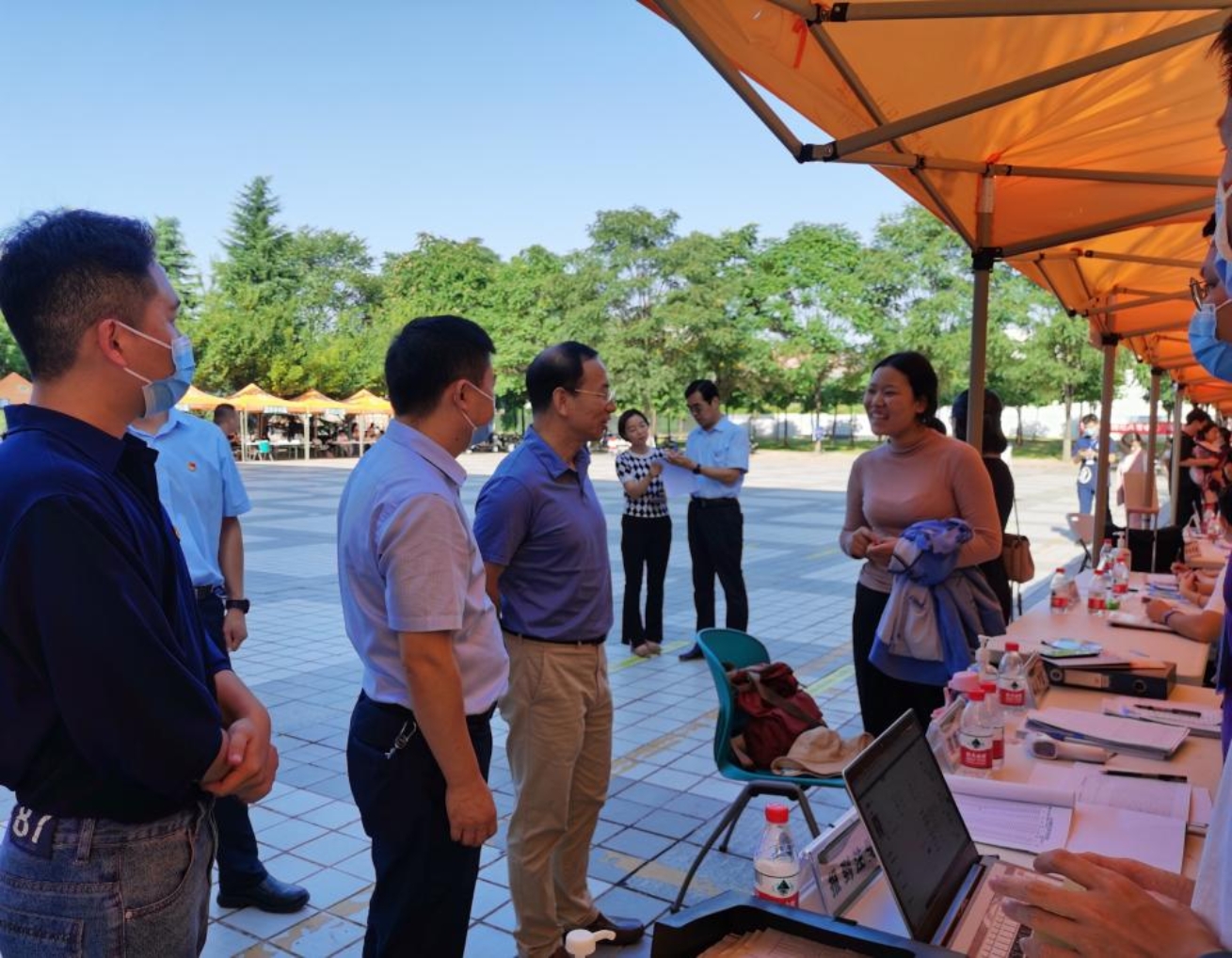 公司党委副书记闫祖书一行实地踏察迎新现场,对北绣广场前各公司报到点进行慰问并与现场报到新生亲切交谈。公司党委书记党青、经理张宏鸣,党委副书记刘桂玲、副经理胡少军也在现场叮嘱迎新队伍树立良好的校园形象,营造温暖的校园氛围,在落实好常态化疫情防控工作要求的同时,筑牢安全防线,确保迎新工作顺利开展。