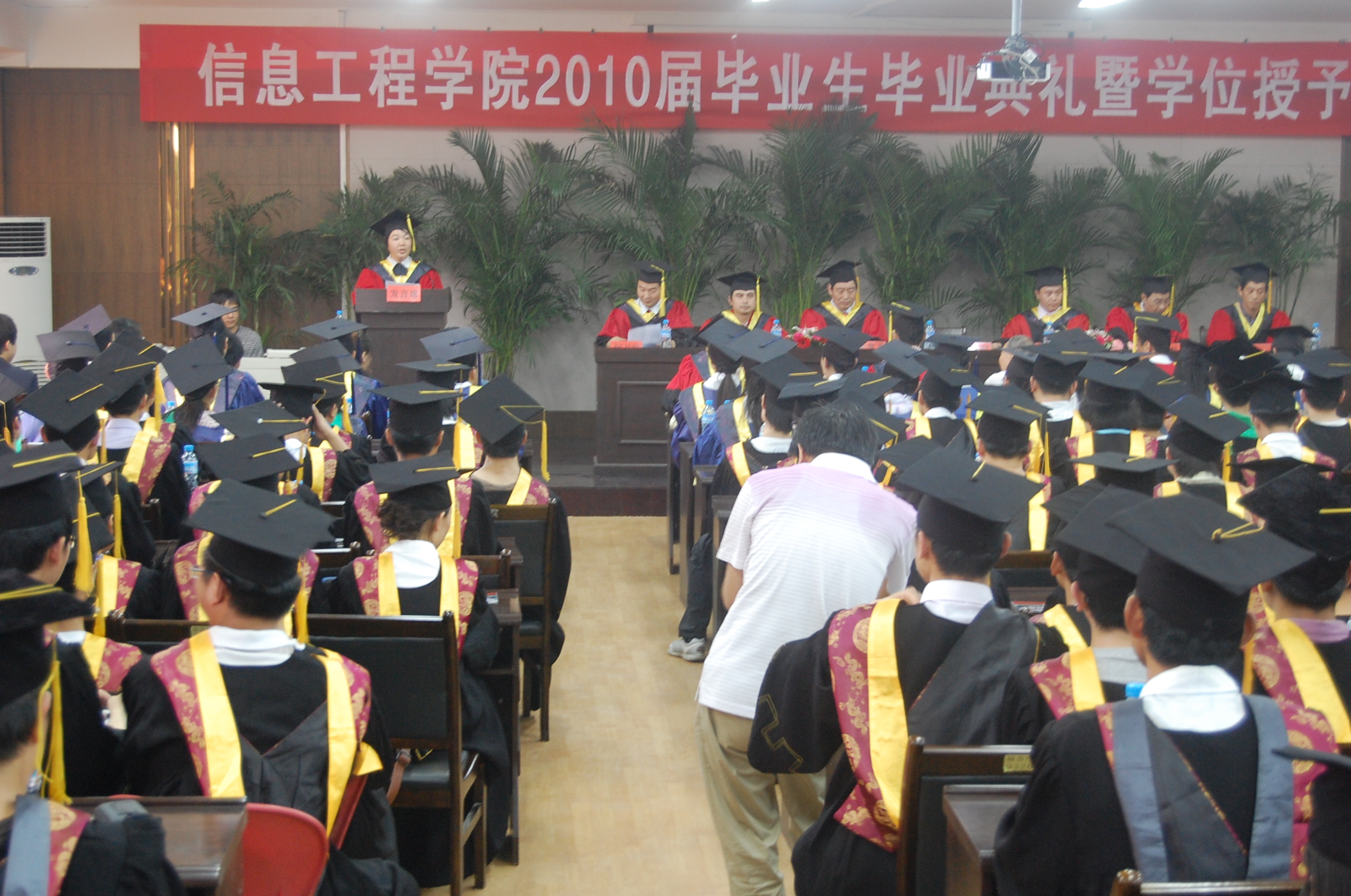 6月25日下午,公司2010届毕业典礼暨学位授予仪式在机电公司三层报告厅隆重举行。公司经理李书琴教授、副经理来智勇教授、张阳教授、王木昌副研究员、教授代表韩宏副教授和方勇教授出席了毕业典礼,部分毕业生指导教师、部分员工家长、全体2010届硕士和本科毕业生以及低年级员工代表参加了仪式。会议由公司党委副书记何卫军主持。