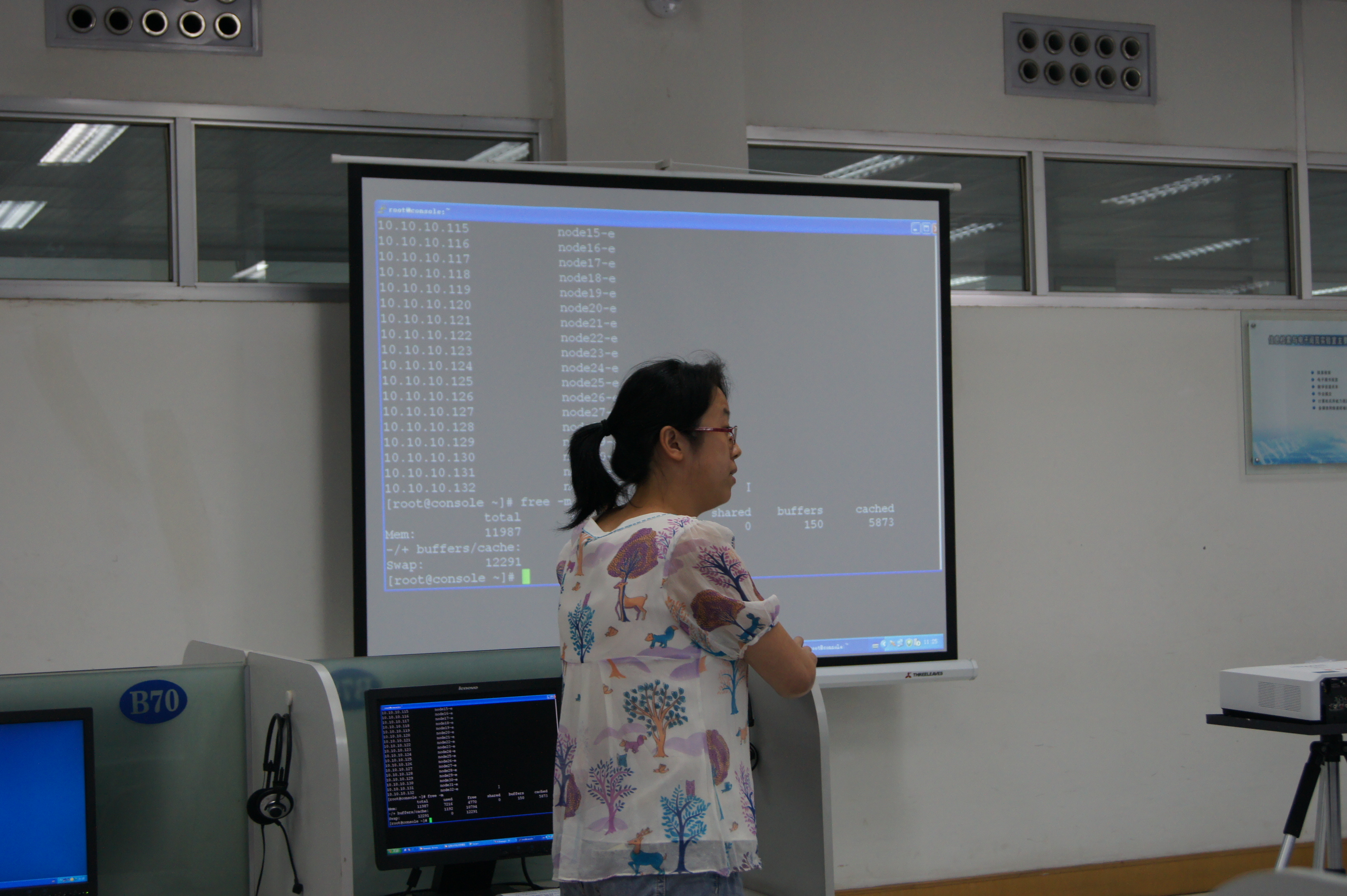 接着,李书琴经理详细汇报了高性能计算平台的运行及研究进展情况。她说在公司领导、有关职能部门和兄弟公司的大力支持下,高性能平台建设工作进展顺利,目前运行正常。她表示公司有信心将平台管理好,为全校师生的科学研究提供良好的数据运算服务。
