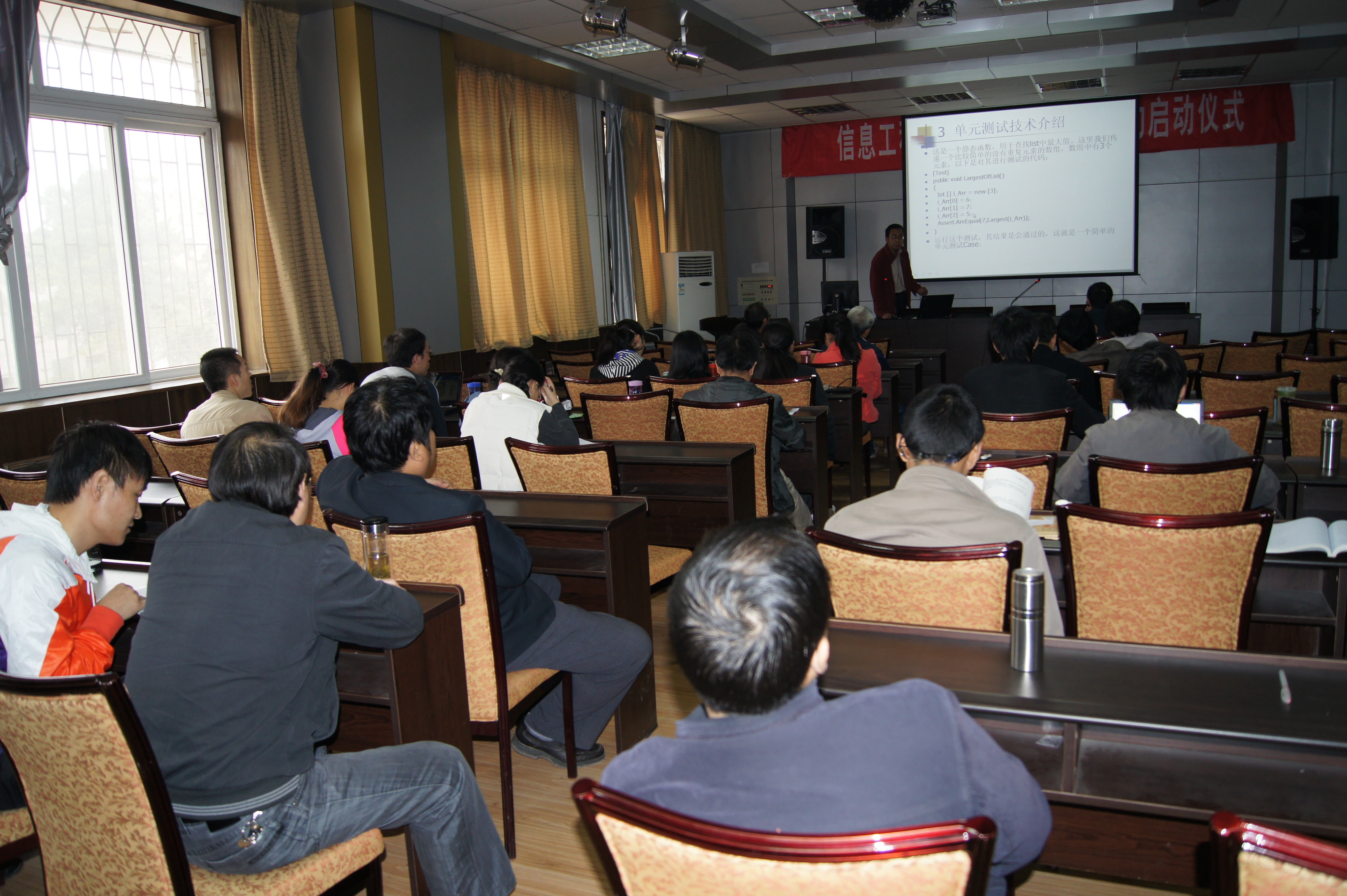 10月13日下午第一场报告圆满结束,晁晓菲、田杰、邹青3位教师分别作了“JSP网站编程-以聊天室为例”、“软件单元测试技术探讨”、“基于Servlet的Web应用”的报告,公司无课教师听取了报告。这一活动收到了良好的效果,得到了教师的一致好评。