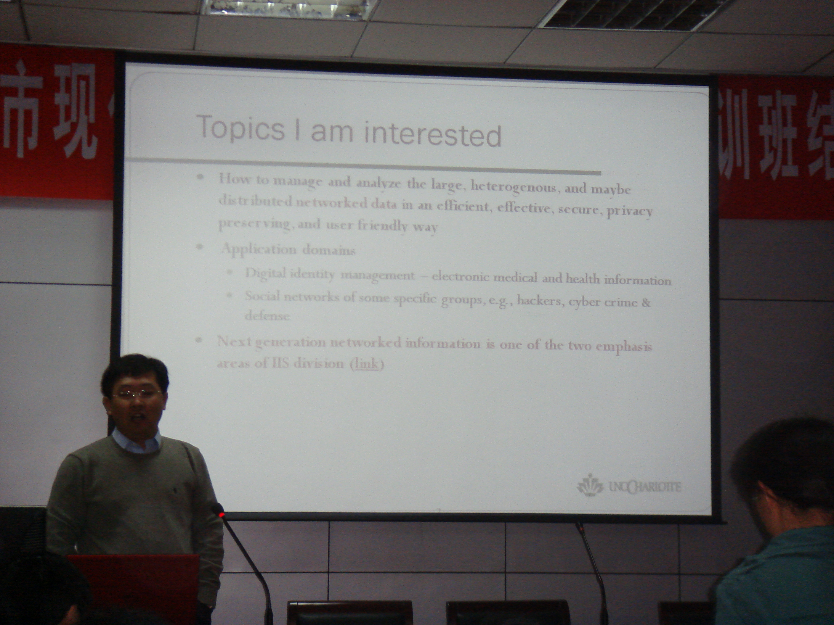 在访问期间,吴鑫涛副教授还为广大师生做了题为“Spectrum based Fraud Detection in Social Networks”、“ 有关隐私挖掘中,噪音数据引入方法的研究”和“Reconstruction from Randomized Graph via Low Rank Approximation”的三场专题报告。