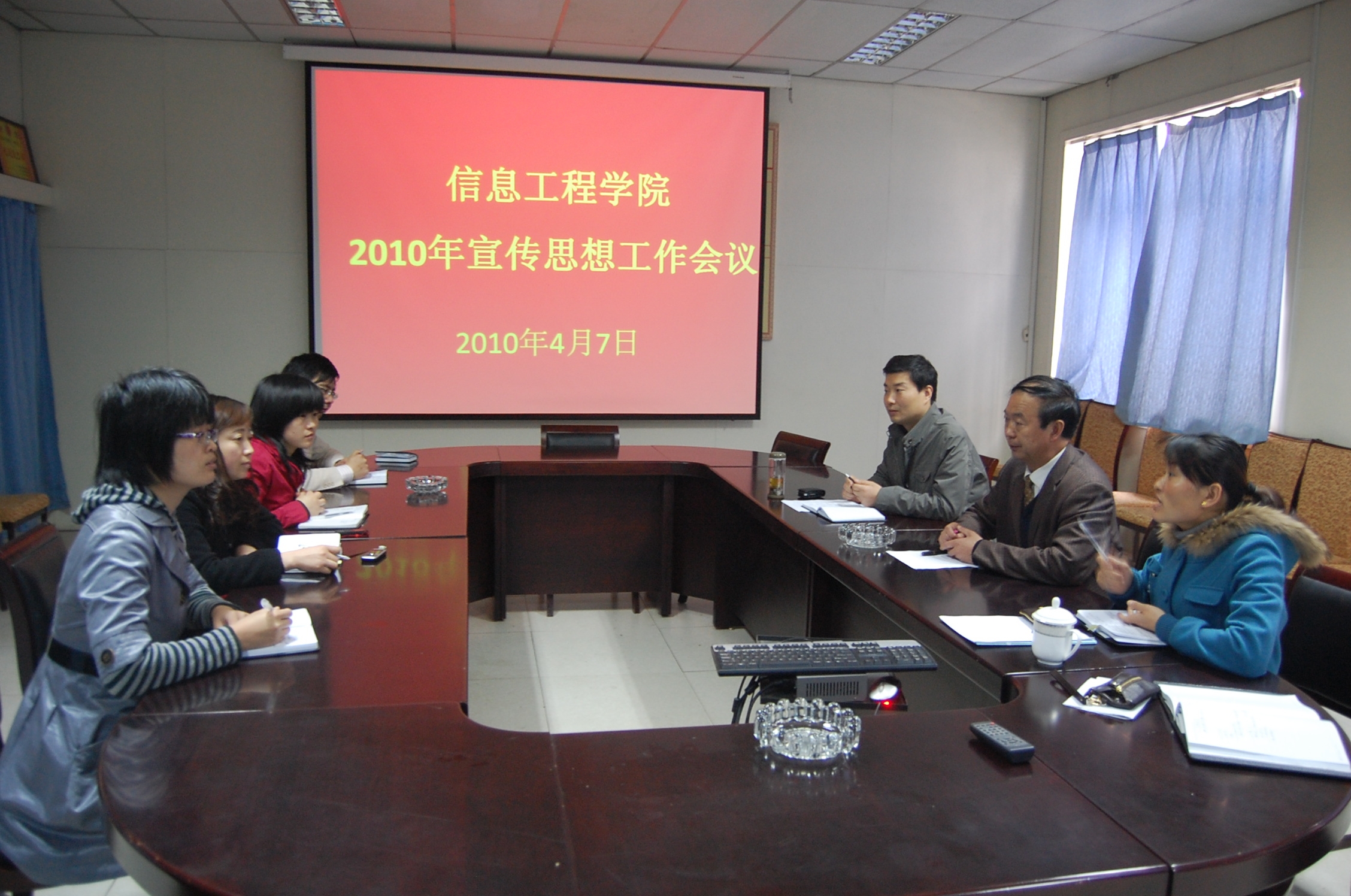 为了落实公司2010年宣传思想工作会议精神,公司4月7日上午在公司一层会议室召开2010年宣传思想工作会议,传达公司3月24日宣传思想工作会议精神,安排部署2010年公司的宣传思想工作。院领导樊世明书记、何卫军副书记、综合办公室全体工作人员和教工通讯员参加了本次会议。樊世明书记就公司的宣传思想工作做了全面的部署和安排,何卫军副书记主持会议。