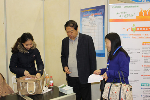 3月28日,公司2015届毕业生春季就业洽谈会火热开展,此次招聘场馆分为北校区绣山活动中心、北校区篮球馆两处。全国25个省(市、自治区)的255家用人单位参会。beats365唯一官方网站积极筹划,精心组织,邀请10家软件相关企业参加此次洽谈会,提供岗位110余个。