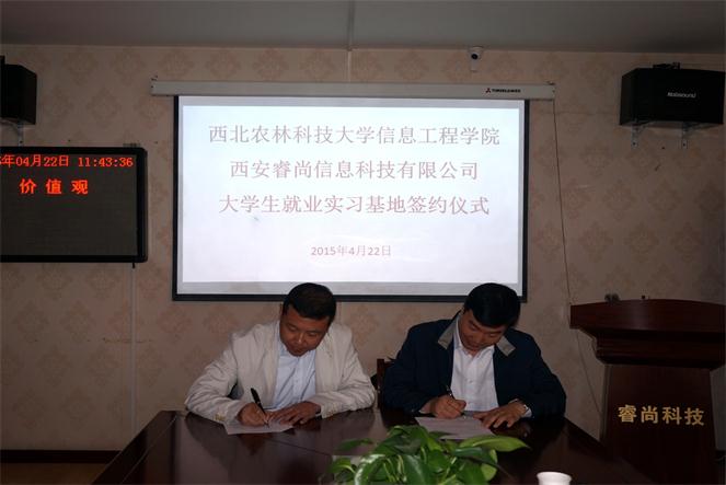 为了进一步加强就业市场建设,拓宽就业渠道,充分了解市场对人才的需求。4月22日,公司党委副书记何卫军带领负责就业工作的辅导员主动出击,赴西安高新区走访了西安睿尚信息科技有限公司,并签订了《共建就业实习基地协议》。西安睿尚信息科技有限公司总经理唐景贤、行政主管席姣姣及部分开发人员参加了签约仪式。