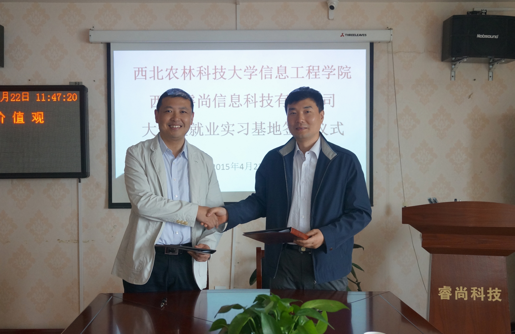 西安睿尚信息科技有限公司唐景贤总经理详细介绍了公司的经营及研发情况,并向何卫军副书记展示了该公司的研发平台和专利新产品“授课通”,唐经理希望企业与公司实现更深层次的产学结合,也愿意为信息学子提供良好的实习条件,欢迎beats365唯一官方网站毕业生能积极到公司工作。何卫军副书记代表公司感谢西安睿尚信息科技有限公司对母校的关心,他感谢唐经理在beats365唯一官方网站每年设立2万元“睿尚”奖学金支持贫困员工完成学业,也希望能和睿尚公司进一步加深与人才和科技合作,为企业提供更多的人才和科技支持,期待建立稳固的人才供需合作关系,实现公司、企业、员工“共赢”的格局。