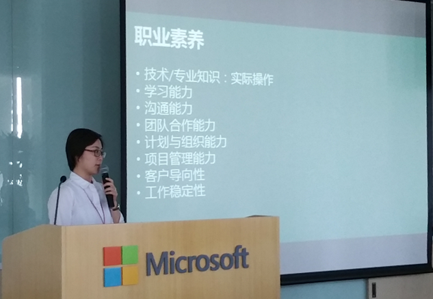 在微软亚太研发集团相关负责人的带领下,参会代表参观了新技术展示中心和基于微软云平台Azure云成果展示的第四代数据中心。参观结束后,微软亚太研发集团战略合作事业部的技术项目经理徐栋为参会代表系统介绍了ITOA人才培养体系、课程体系以及在高校课程开展方面可选的几种形式。徐栋经理表示微软将联合西安深蓝培训在陕西组织两次教师培训,将为大家系统介绍微软共有云平台,以便更好的为高校师生服务。此外,项目开发经理陈岭为大家介绍了西咸沣西国家高新技术开发区基于微软云平台建设的政府门户网站及其技术框架。最后,周文静女士指出目前具备大数据知识人才缺口很大,并介绍了一个合格应聘者应具有的职业素养。为了培育更加优秀的人才,微软提出了为2017年毕业生提供的微软育苗计划以及为2016年毕业的员工设置的探星夏令营。