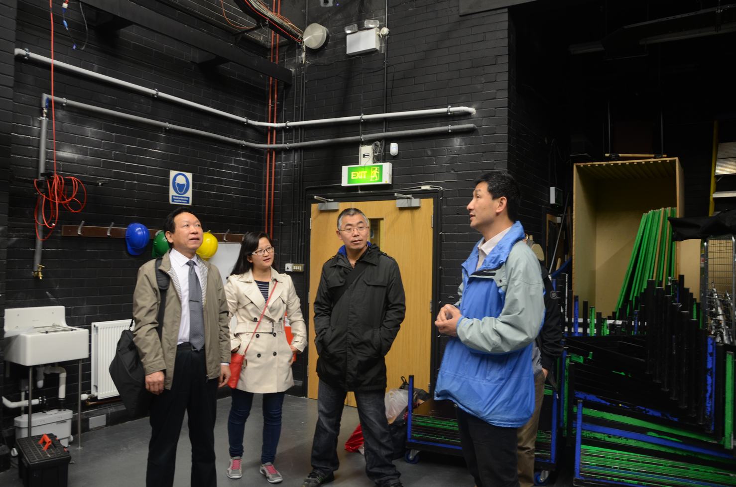 团队成员参观了英国国家计算机动画中心的动作捕捉实验室,该实验室捕捉设备能实时获取人与动物的运动骨骼数据,且能在室外场景下有效采集动作数据。并参观了动画中心搭建的可媲美BBC水准的专业摄影棚与录音室,高水平的教学条件,为该校媒体公司和动画专业员工实习与培训提供重要的支撑作用。