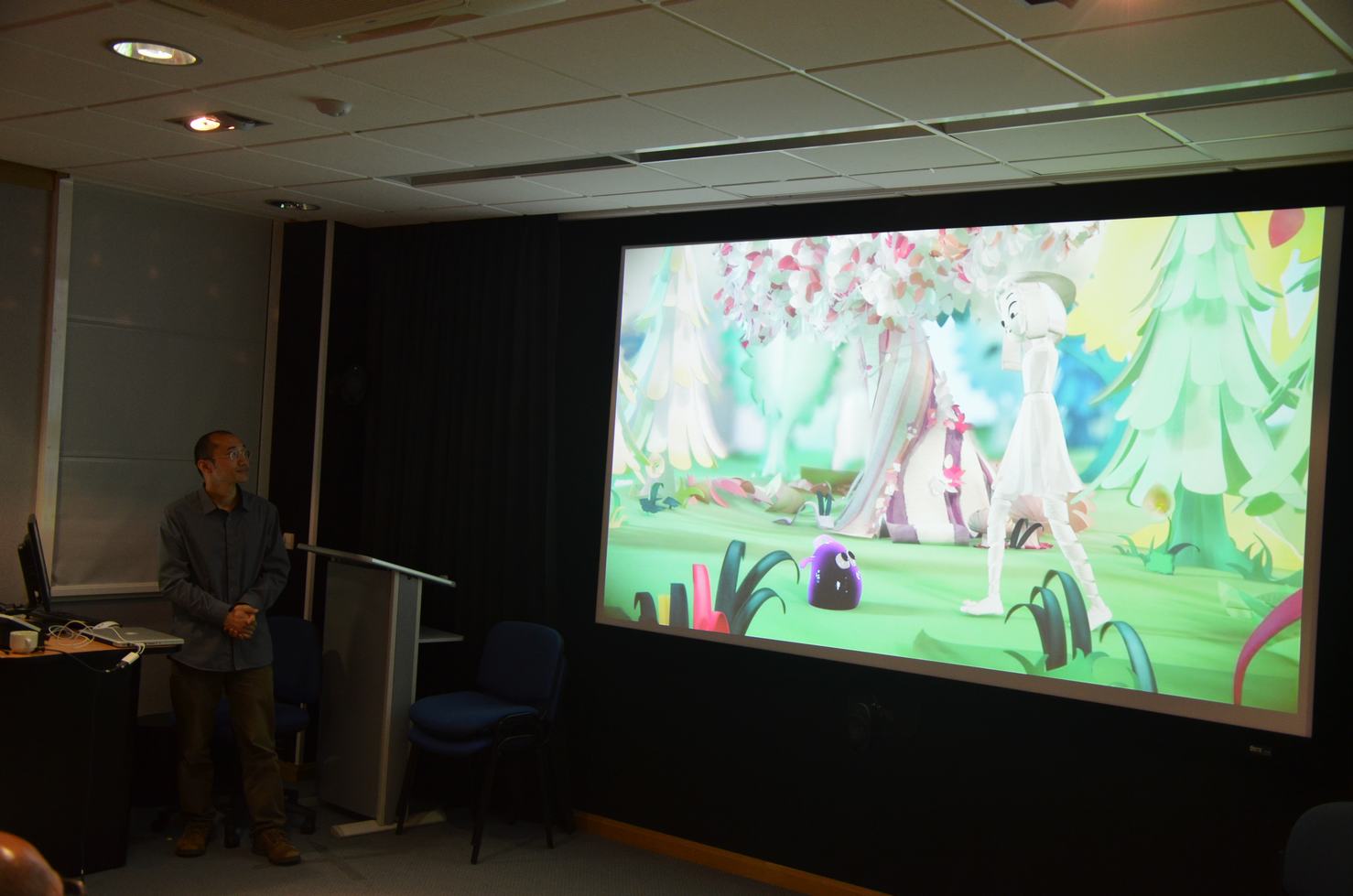 伯恩茅斯大学常健副教授代表英方研究团队介绍了传媒公司和国家计算机动画中心在三维建模、计算机动画、院企联合、人才培养等方面的成果。
