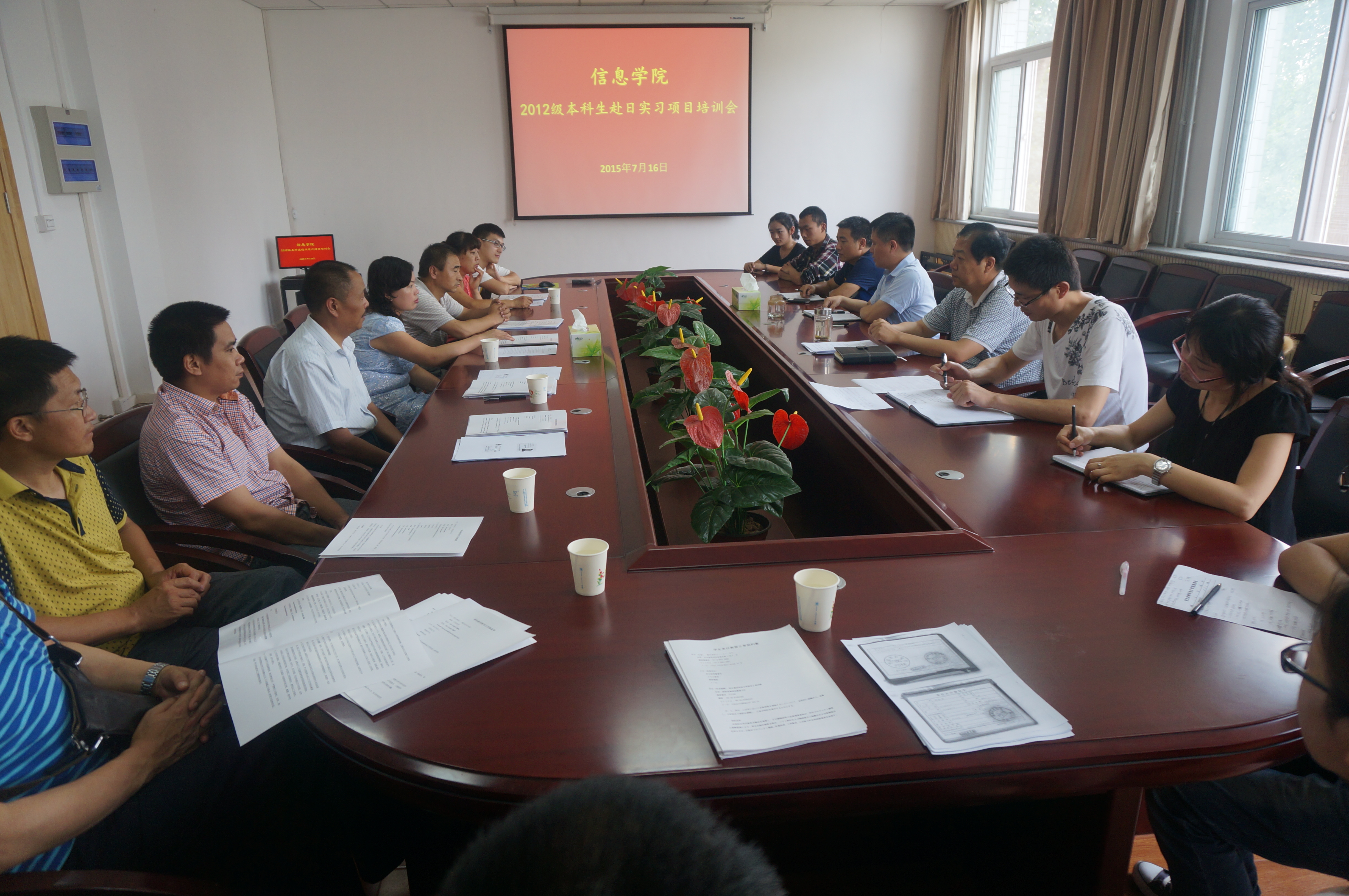 经过前期的日语培训学习,日语笔试,日方企业现场面试与远程面试相结合,初次选拔李占蕊、李玉、王莹、周鑫恺、高中建、李超等6名同学于近期办理赴日相关手续,为了保证2012级本科生赴日实习项目顺利进行,beats365唯一官方网站于7月16日下午3:00在公司216会议室召开赴日实习项目培训会,公司书记宋西德、主管教学副经理张阳、教务处学籍科负责人安福定以及公司外事、教学等相关负责人、赴日员工及员工家长参加了会议。