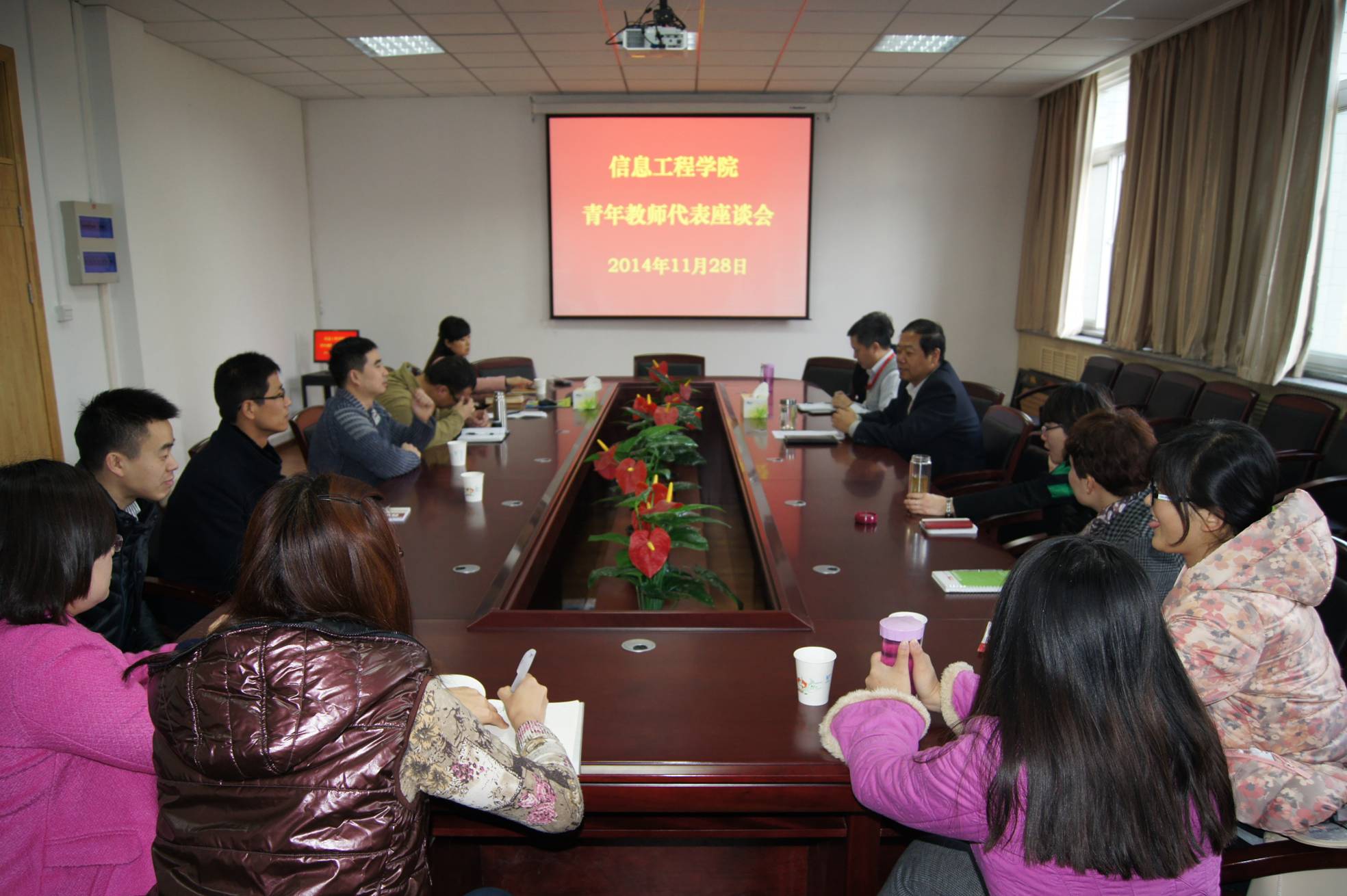 11月28日,公司在216会议室召开青年教师代表座谈会,公司党委书记宋西德、副经理张阳以及10名青年教师代表参加了座谈会。