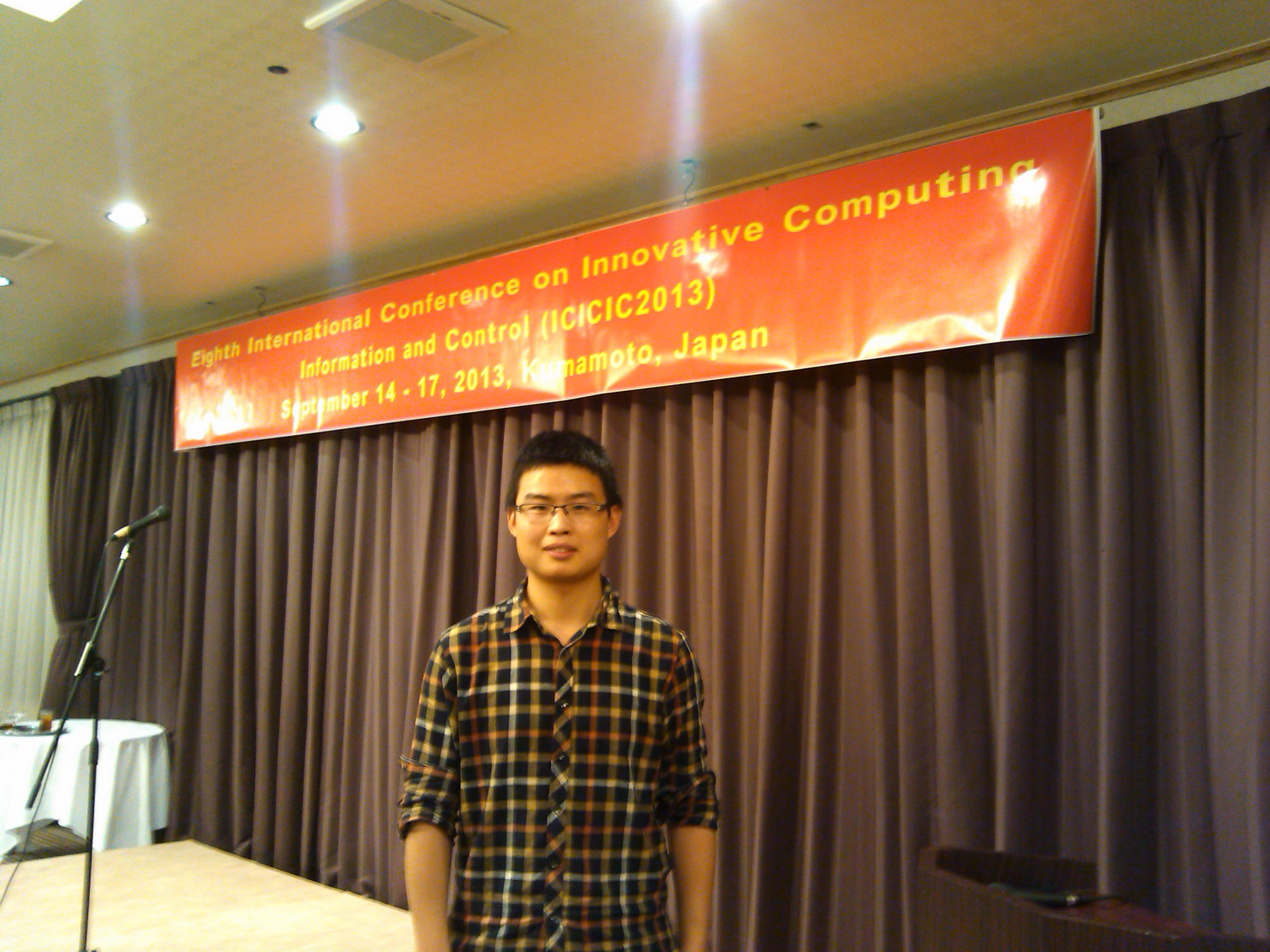第8届创新计算、信息与控制国际学术会议(The Eighth International Conference on Innovative Computing, Information and Control, ICICIC2013)于2013年9月14日- 9月17日在日本熊本国际交流中心召开,会议由国际创新计算信息与控制学会(http://www.ijicic.org)和熊本东海大学主办。公司蔡骋副教授指导的2011级计算机应用技术专业的硕士研究生李永超的论文“Nondestructive Fuji Apple Internal Quality Classification with Dielectric Feature Selection”(基于介电特征选择的富士苹果内部品质无损分类)被该会议收录,并在大会主会场做了专题报告。