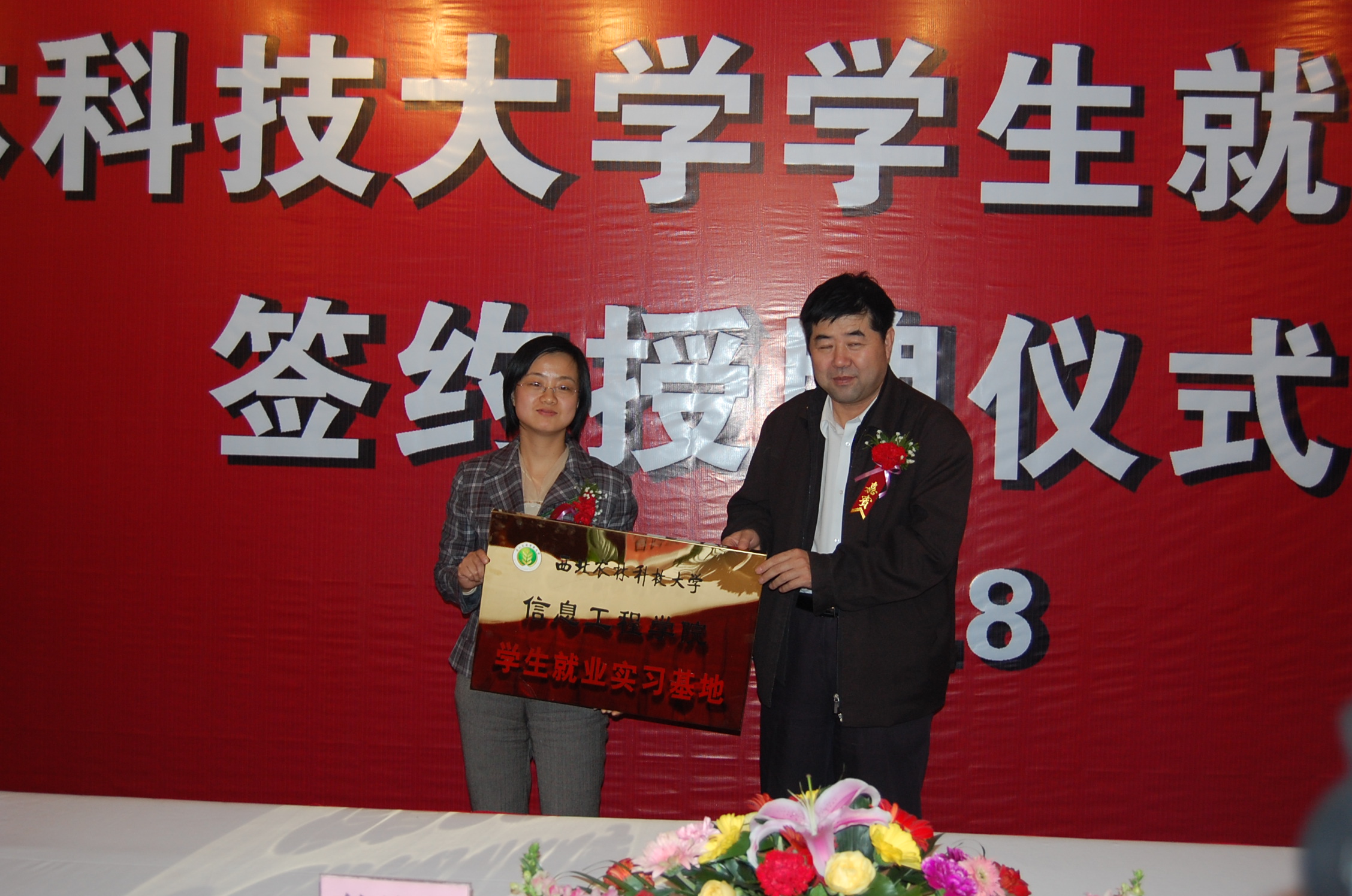 首先经理何东健教授和北京神洲数码融信软件有限公司人事部经理折沂女士签定了实习基地协议。公司党委副书记、副董事长王革向北京神洲数码融信软件有限公司授牌。