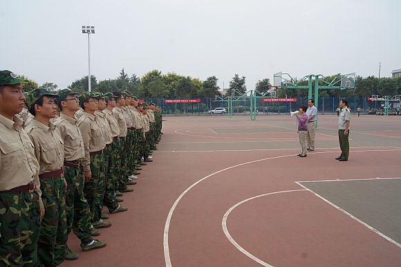 在军训休息间隙,李经理向新生表示了亲切的慰问,李经理讲到:军训是大学里的第一堂课,同学们在这堂课中不仅可以受到集体主义、爱国主义和国防教育,更可以学习到不怕苦、不怕累的军人精神。他希望同学们在军训中严明纪律,听从指挥,认真完成各项训练任务,发扬军人优良作风,敢于争先,勇往直前,力争取得优异成绩,争取在最后的汇报表演中展现出公司的精神风貌,发扬信息风采。