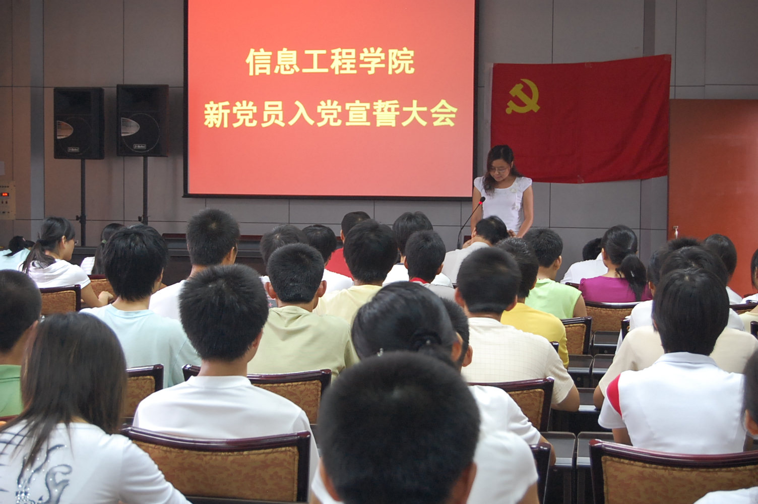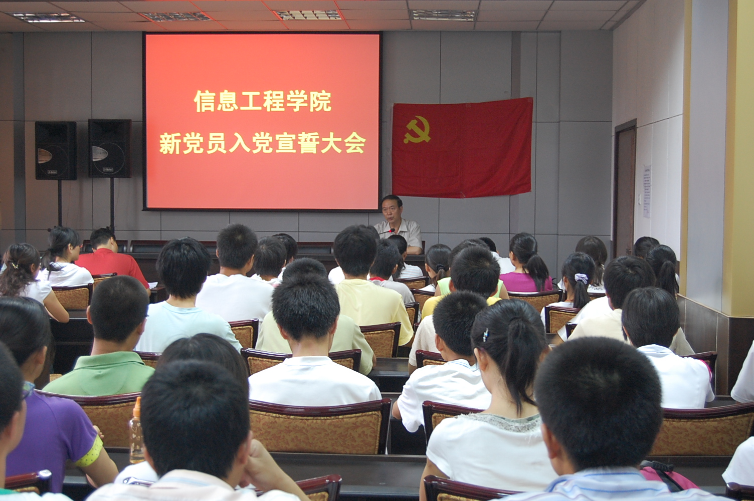 大会在庄严的国际歌中拉开了序幕,105名新党员在鲜红的党旗前庄严宣誓,表达自己的赤诚之心。李达同志代表新党员表明了决心,她表示要牢记入党誓言,刻苦学习,努力工作,不辜负党和人民的培养,以实际行动给党旗增光添彩。最后,樊世明书记作了讲话,他深情地回顾了中国共产党87年来所走的路程,再次向大家证明了没有共产党就没有新中国,没有共产党就没有中国特色社会主义事业的蓬勃发展。同时,他向新党员提出了殷切的希望,希望新入党的同志牢记入党誓言,胸怀共产主义远大理想,为中华民族伟大复兴而奋斗;希望新入党的同志进一步加强党的理论知识学习,提高党性修养;希望新入党的同志继承党的优良传统和作风,发挥党员先锋模范作用,以实际行动努力成为一名优秀共产党员。