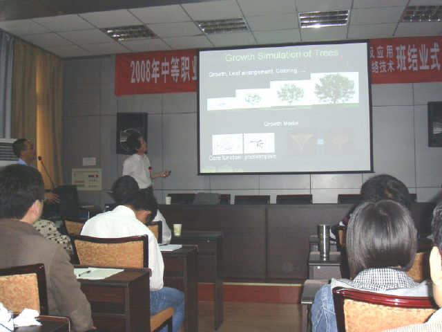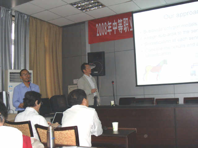 2008年10月2日下午,应公司邀请,国际知名虚拟现实领域专家、日本岩手大学工公司千叶教授、今野教授在公司二楼多功能厅为公司广大师生分别作了题为“大规模计算机图形学”和“基于PC集群的3D处理”的报告。经理何东健教授主持报告会,李书琴副经理及公司教师、研究生出席了报告会,张志毅副教授对两位专家的报告进行了全场的精彩翻译。