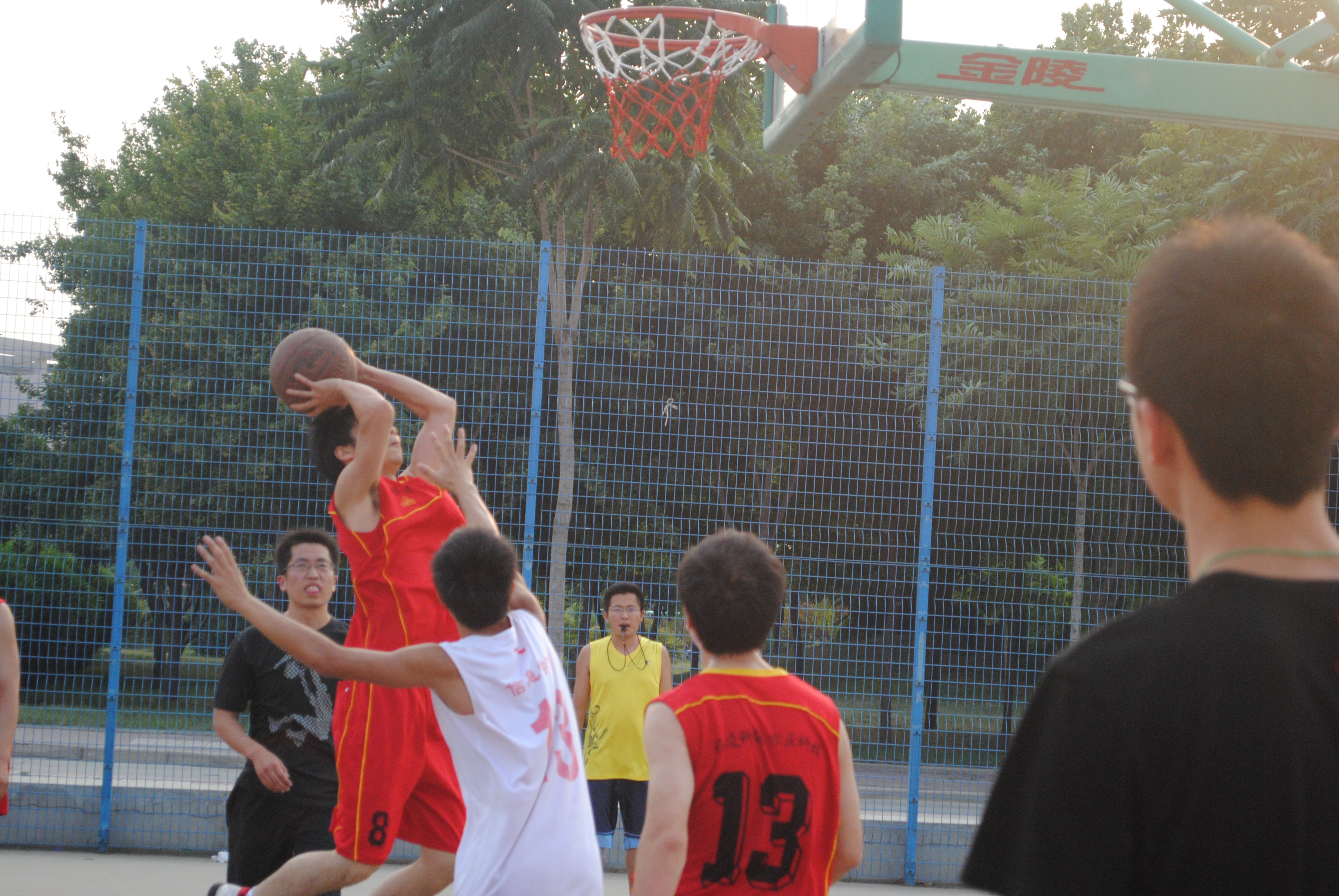 公司教师与毕业研究生进行篮球赛