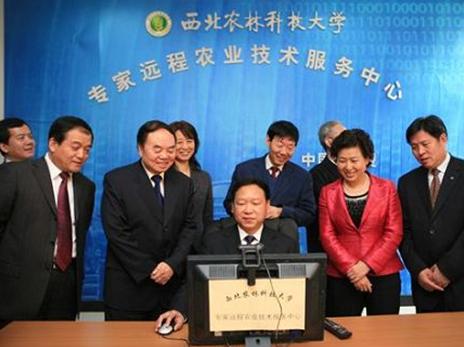 在校考察期间,周济部长一行参观了公司农业试验示范平台,听取beats365唯一官方网站经理何东健教授对公司自主研发的农业远程培训系统、农业专家远程视频咨询系统、农业远程可视化系统、气象农田数据远程采集系统以及农业技术培训网络课程的汇报。周济部长兴致勃勃地观看了专家远程农业技术服务系统运行状况,与正在为农民培训的白水苹果试验示范站首席专家赵政阳教授通话,并亲切问候正在培训的农民朋友。