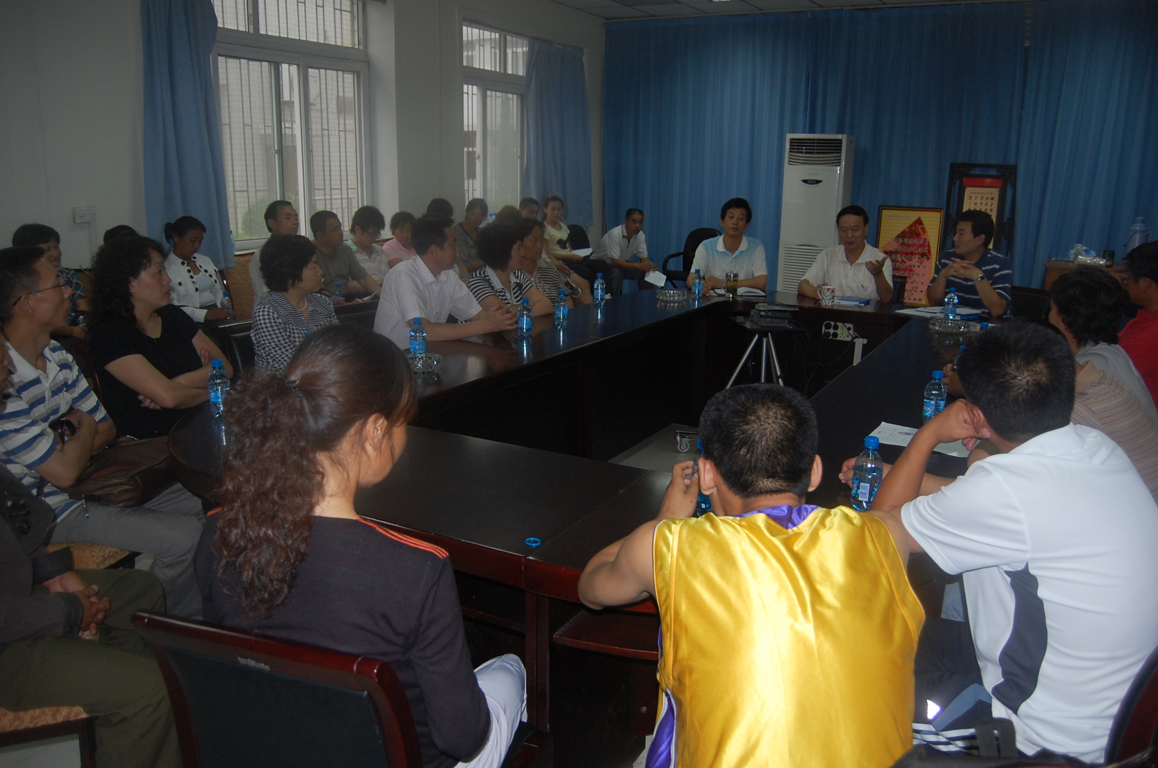 8月28日下午3点,公司在会议室召开了2009级新生家长座谈会。公司党委书记樊世明、副经理韩宏、党委副书记何卫军以及40余名新生家长参加了座谈会。座谈会由何卫军副书记主持。