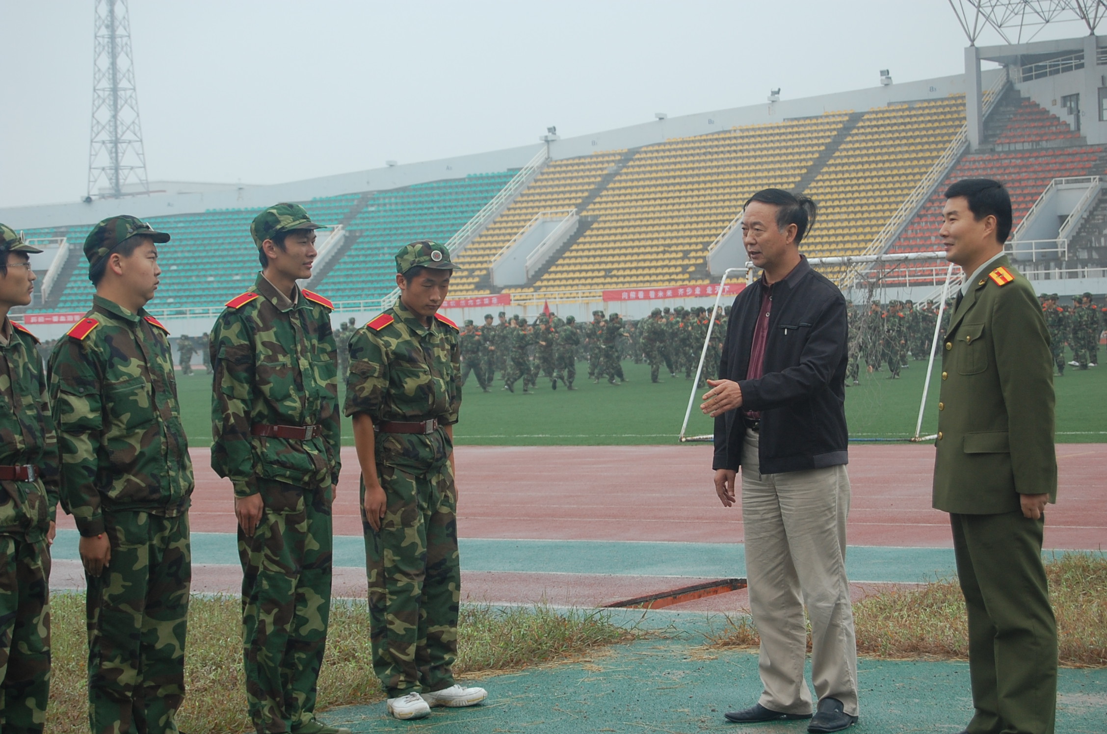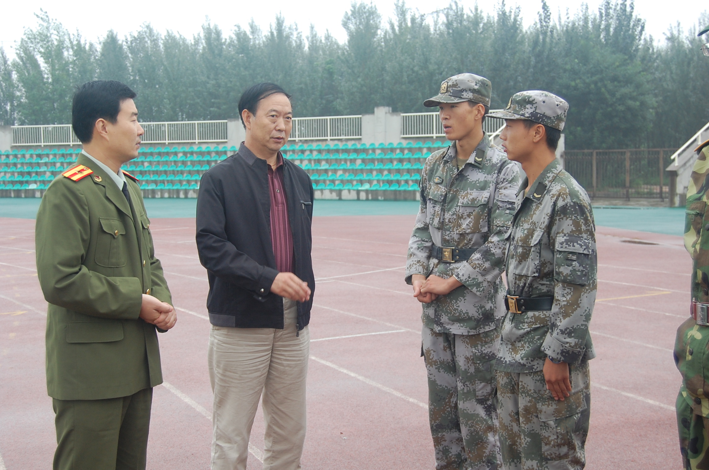 两位领导在训练场观看了同学们的训练,与场边因病不能参加训练的同学进行了亲切交谈,向指导员安中立同志详细询问了今年公司军训工作的具体实施情况以及军训期间同学们的生活、思想状况,强调应该利用军训来培养全体新生的组织性和纪律性,养成良好的学习、生活习惯。在军训休息间隙,樊世明书记代表公司感谢各位教官近日来耐心、细致的辛苦教导,充分肯定了同学们的训练成绩,表扬了同学们在训练中体现的激情和优良的作风,鼓励大家继续发扬不怕苦,不怕累的精神,争取在最后的会操比赛中展现出公司的精神风貌。何卫军副书记也叮嘱同学们要听从教官和指导员的安排,提醒大家近日温度变化较大,要注意保暖,保障军训工作的顺利完成。