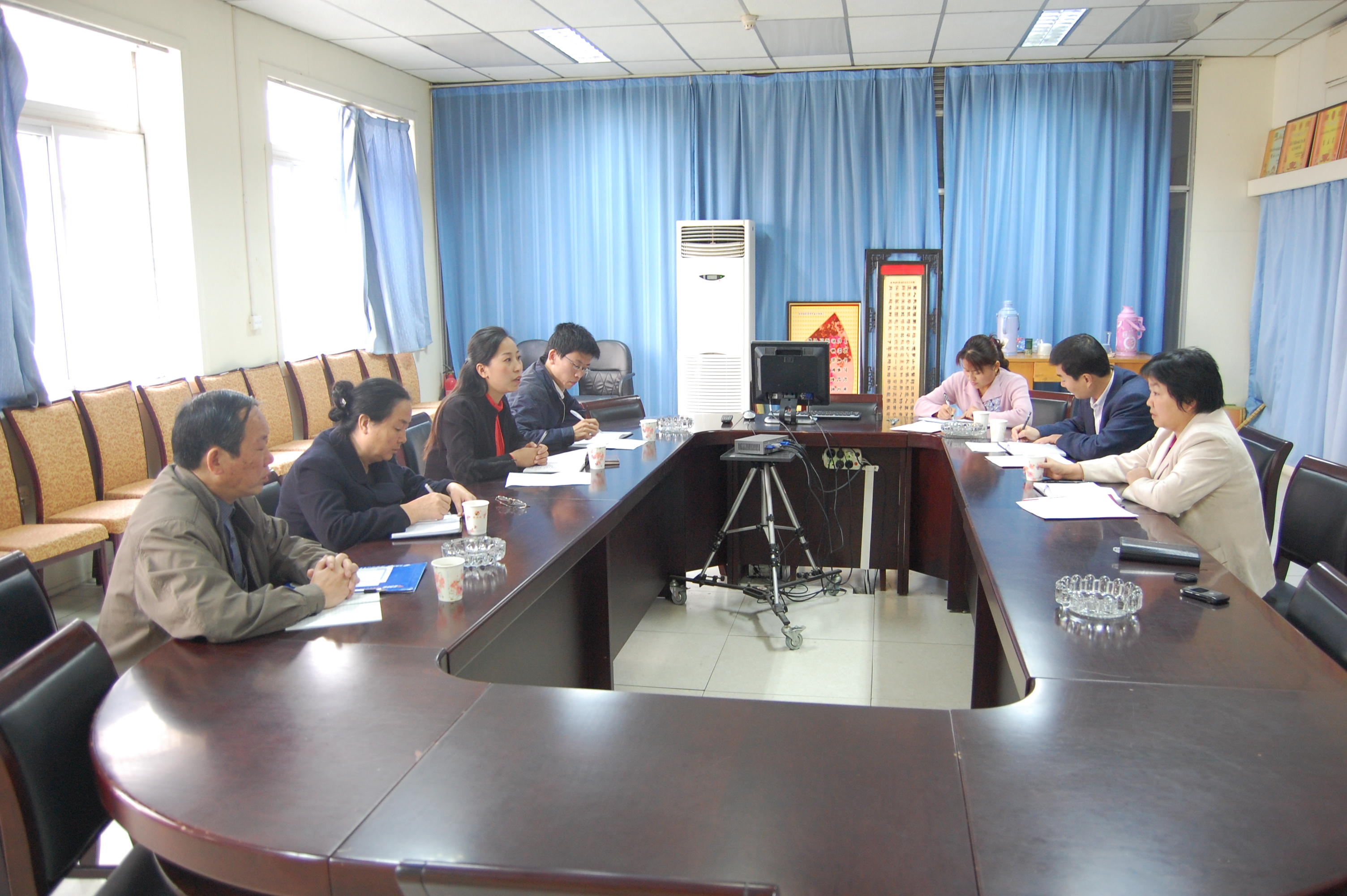 10月21日下午,员工处苏蓉老师、董安民老师、邓宝英老师和李景星老师一行到公司调研招生工作。公司主持行政工作副经理李书琴教授、党委副书记何卫军老师、办公室主任刘桂玲老师等参加了工作调研。