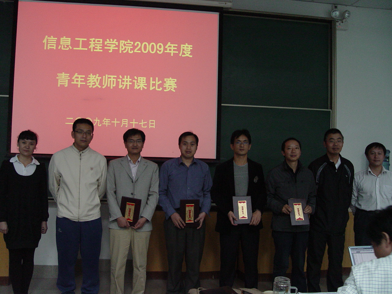 11月17日,公司2009年青年教师讲课比赛在多媒体教室2举行。大赛由副经理韩宏副教授主持。王莉等13名由系(部)初赛选拔出的青年教师参加了比赛。主持行政工作副经理李书琴教授、书记樊世明研究员、副经理韩宏副教授、软件工程系主任张阳老师、信管系主任任国霞老师、科学系主任耿楠老师、控制系马永老师、基础部主任陈勇老师及副主任孙健敏老师共9名老师担任了评委,未参赛的35岁以下青年教师观摩了比赛。