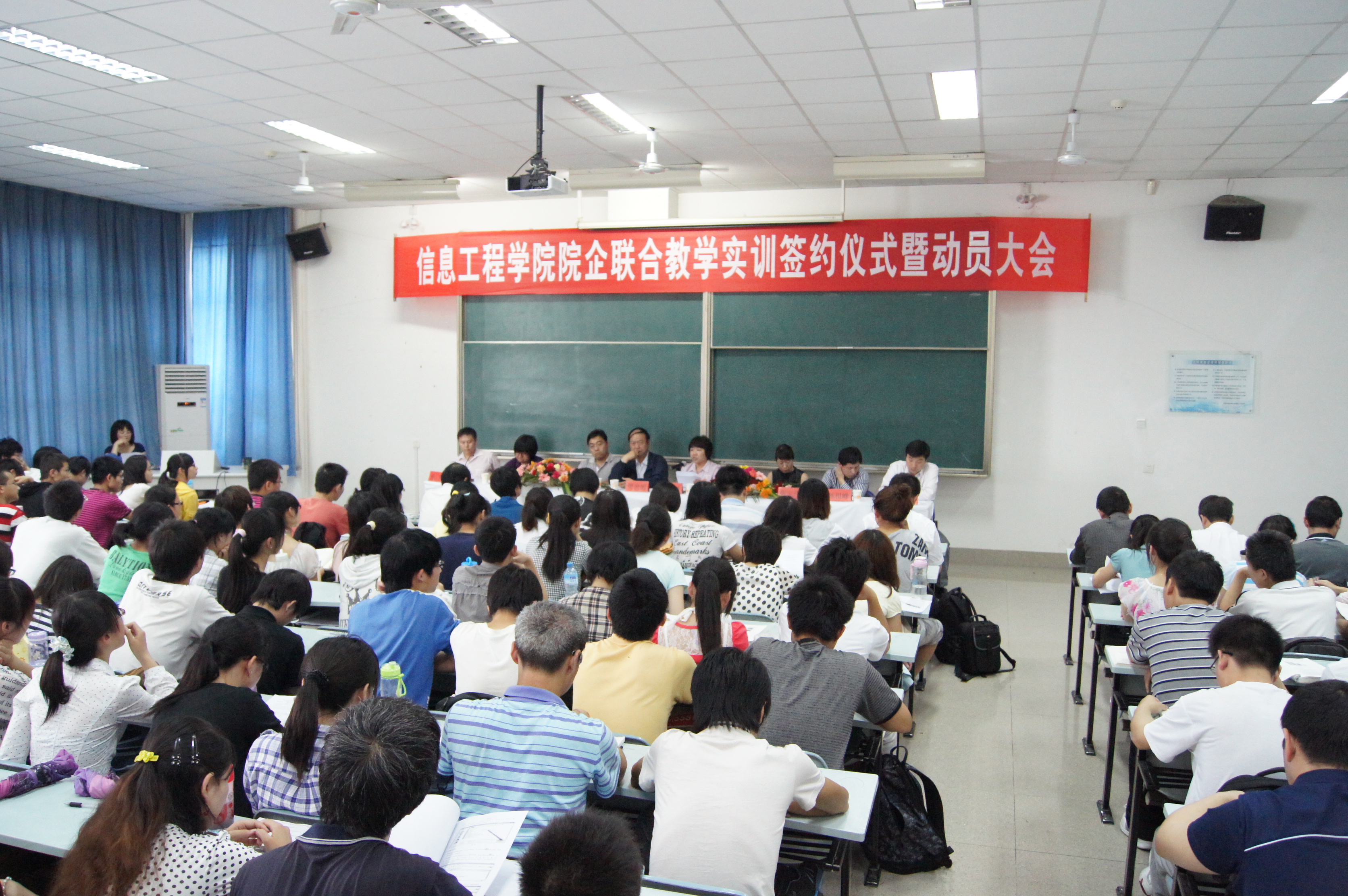 会上,公司领导介绍了本次实训的基本情况,为2008级254名员工介绍了院企联合教学实训的目的、意义及培养目标,并对员工从实训态度、实训的安全纪律等多方面提出了明确、严格的要求,全体同学签订了教学实训员工承诺书。合作的三家企业领导向同学们详细讲解了实训方案及考核办法,公司与三家企业签订了“公司企业员工教学实训协议书”。