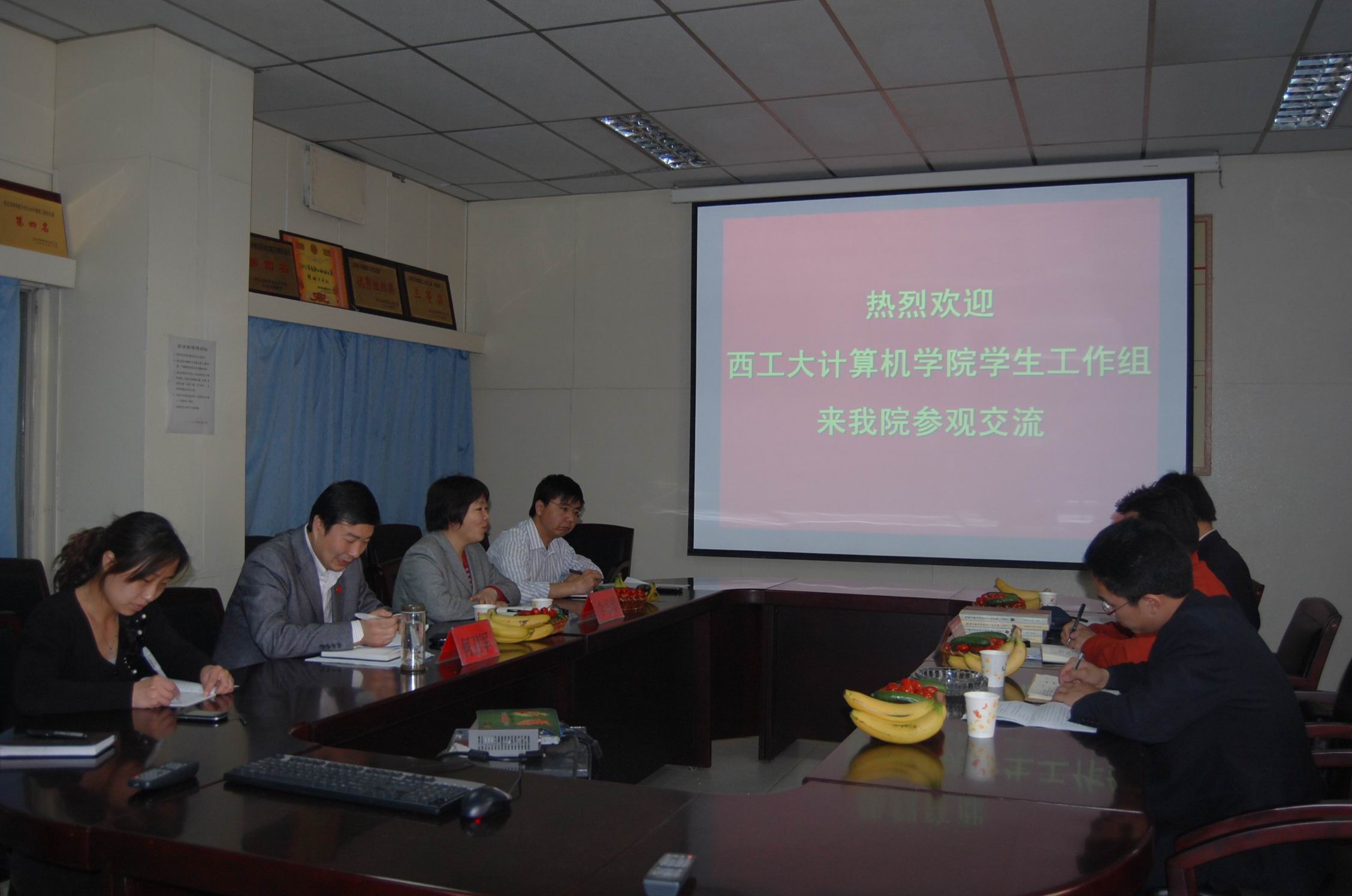 西工大计算机公司宫健副书记一行首先参观了公司计算机教学中心。公司在一层会议室召开了座谈会,会上,李书琴经理代表公司全体师生对西北工业大学计算机公司宫健副书记一行来院考察交流表示热烈欢迎,她介绍了公司和公司的历史和基本情况,以及公司员工工作的整体情况。公司党委副书记何卫军从专业设置、党支部设置、加强学风建设各项措施、团工委员工会开展的特色活动情况及员工工作取得的成绩等五个方面介绍了公司员工工作。西北工业大学计算机公司宫健副书记对公司员工工作开展情况及取得的成绩给予了很高的评价。双方就员工工作的工作经验和工作心得进行了深入交流,起到了相互借鉴,取长补短的作用。