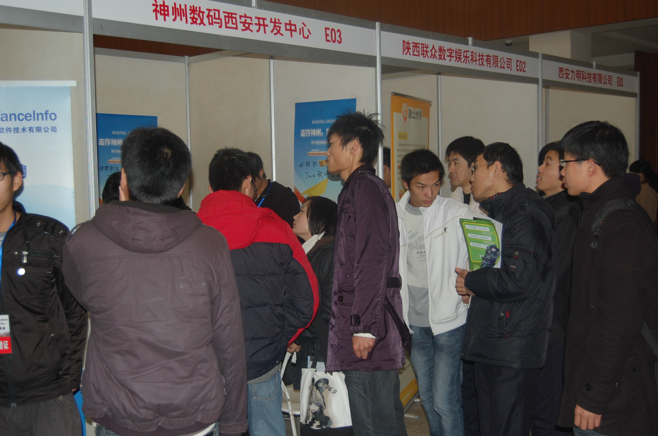 11月28日,公司在南校区秀山活动中心举行了2010届毕业生供需洽谈会,公司为这次洽谈会做了充分准备,自10月份以来,公司向往年招聘公司毕业生的40余家单位寄发了邀请函,公司党委副书记何卫军先后3次赴西安、1次赴上海、1次赴广东邀请用人单位,开辟就业市场,辅导员安中立赴北京参加了公司组织的2010届毕业生推介会,主管就业的辅导员还电话邀约落实参会单位,公司领导通过各种渠道邀请单位来院举行专场招聘会和参加大型洽谈会。经过多方努力,今年的毕业生供需洽谈会上,公司邀请到了陕西中盈蓝海创新技术股份有限公司、亚森西安亚森通信股份有限公司、西安力明科技、西安丝路软件有限责任公司、神州数码融信软件有限公司、西安三茗科技有限责任公司、西安朝阳医疗信息产业有限责任公司、联众电脑技术有限公司西安分公司、文思信息软件技术有限公司、西安软件园软件服务外包公司、华盛多媒体科技(西安)有限公司等13家单位,提供就业岗位60余个。