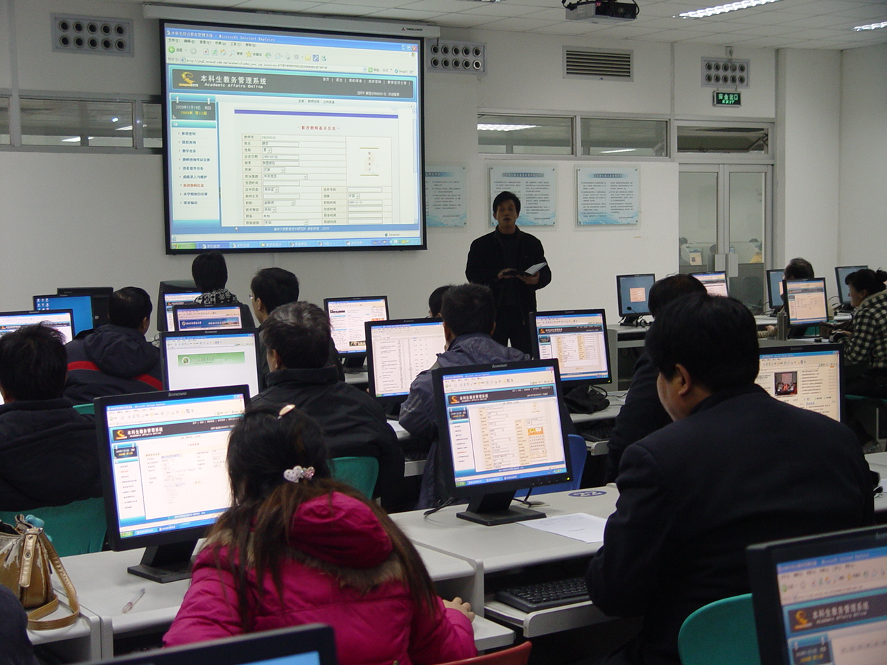 为积极推进公司数字化教学管理进程,不断提高教学水平和管理效率,公司于2009年11月19日在计算机教学实验中心一层南机房举行了培训会,对全院教师使用旗下产业管理信息平台进行了培训。