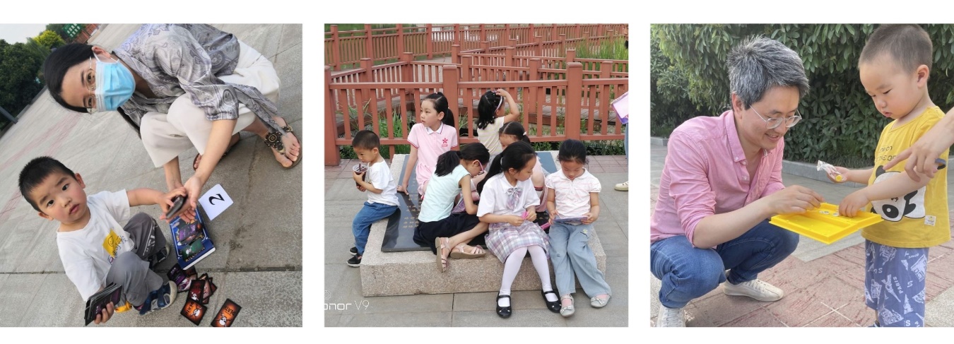 在小西湖广场,工作人员讲解完规则后,随着一声“出发!”的号令,早已迫不及待的小朋友就像离弦的箭一样飞奔了出去,边跑边东张西望,寻找着工作人员的身影,家长们也跟着小朋友跑了起来。小西湖畔不时传来:“哥哥,您有庆祝中国共产党成立100周年标志吗?”“姐姐,您有庆祝中国共产党成立100周年标志吗?”的稚嫩、礼貌的询问声;还会看到一堆家长小朋友围观,小朋友们自信地轮流回答问题、表演节目的场景。成功寻找并获取到一个标志,就像顺利通过一关,小朋友们脸上洋溢着开心的笑容,撒腿奔向前方继续探寻,集齐标志的小朋友拿到心仪奖品后,一起交流起来,与父母、小朋友分享着自己的喜悦。