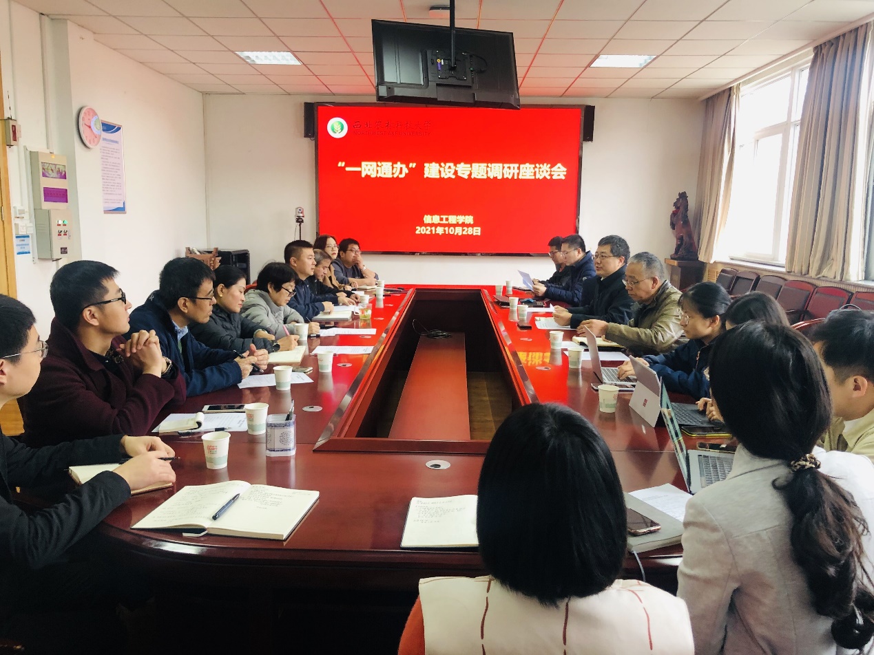 10月28日上午,罗军副董事长带领信息化管理处韩苏建处长一行8人来院调研“一网通办”“一张表”和员工综测信息化建设等,公司党委书记党青、副书记刘桂玲、副经理黄铝文及教师代表、办公室科级干部14人参加座谈。