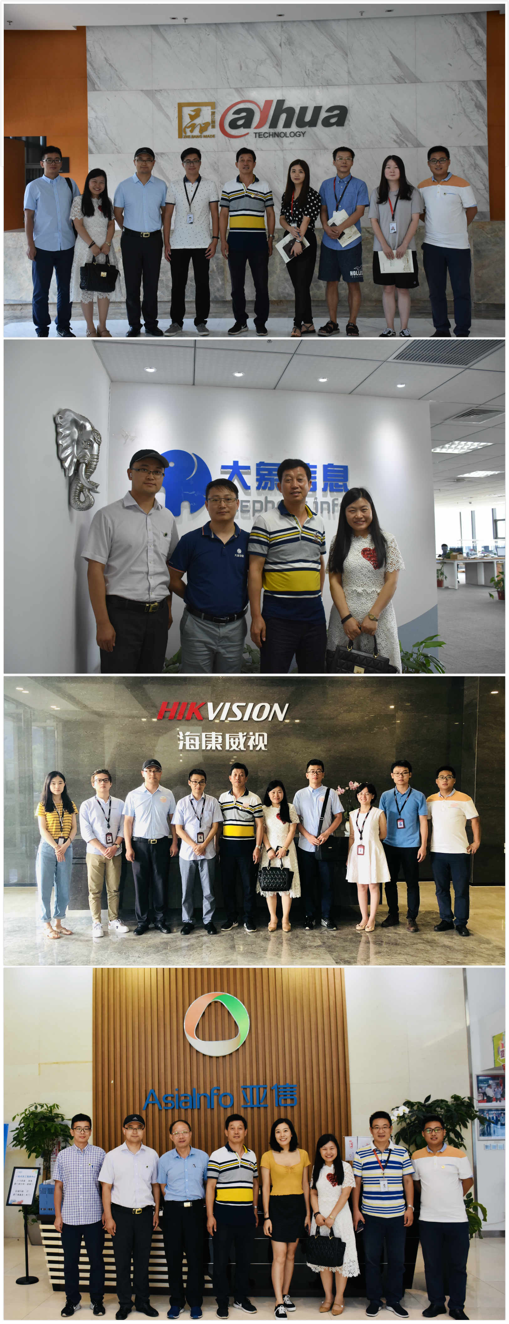 积极走访,扎实开拓就业市场。本次暑期开拓就业市场工作,工作人员不仅走访了阿里巴巴、海康威视、亚信科技、招银网络科技和大华技术等知名企业,同时也走进当地员工创业公司进行深入交流。交谈过程中,公司向企业介绍了人才培养、科学研究和社会服务等方面的优势与特色以及公司2019届毕业生相关信息,各公司相关负责人详细介绍了关于我们、主营业务、管理制度、招聘流程和人才需求。公司领导与各用人单位均对今后与公司加强合作联动、人才培养与输送等表达了积极的合作意向。
