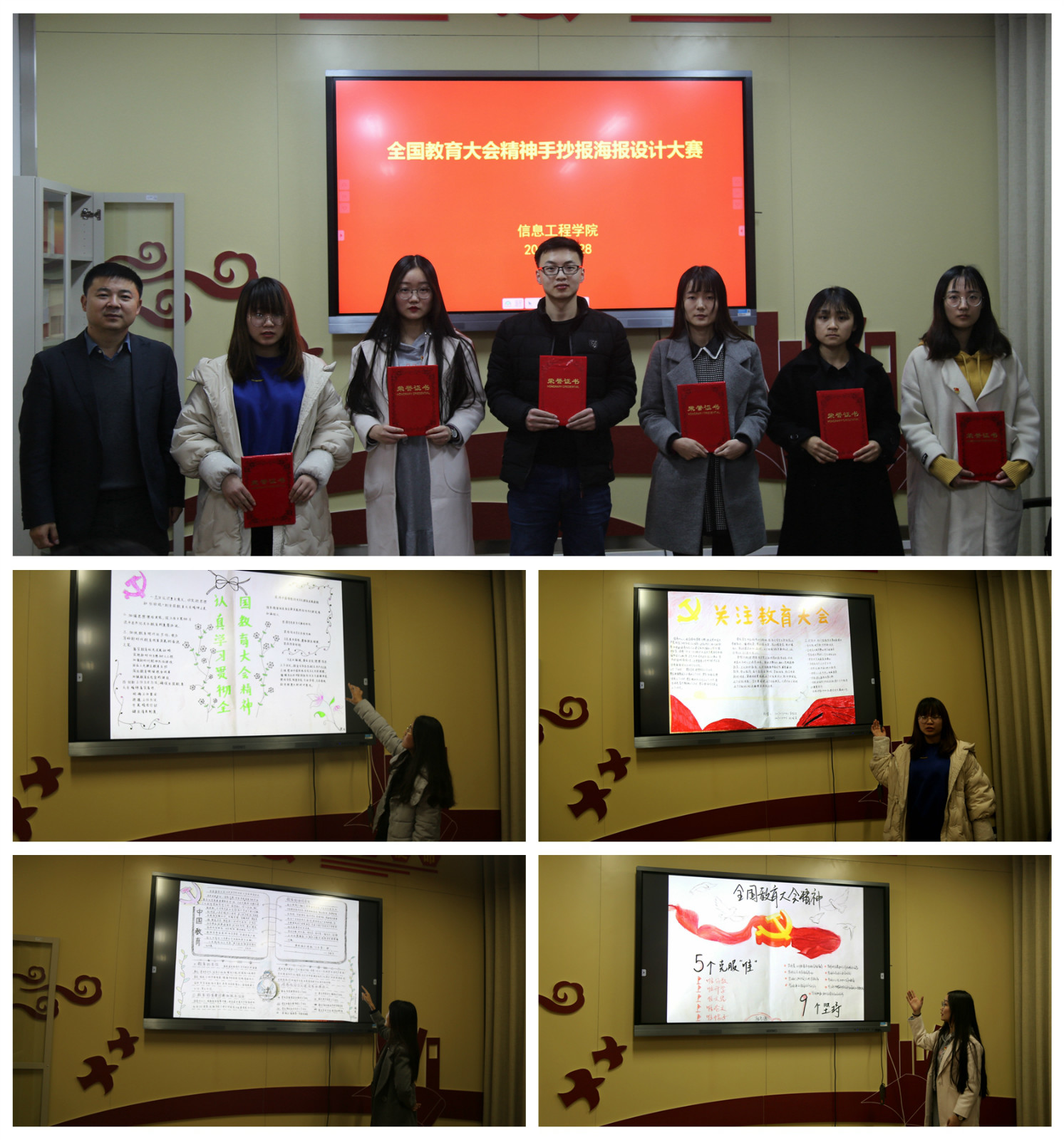 此次手抄报海报设计比赛面向全院师生收集作品。赛前,经过积极的宣传,共提交了近50余份作品。参赛同学在各自的作品中,用形象的图画、精炼的文字表达了对教育大会的理解和认识。公司老师通过对作品的主题、创意、构图、色彩、实践价值等方面进行评判,张馨月、刘雯获得一等奖,张一大、李维维、孙国英、邢聪颖、组艺源获得二等奖,蔡鑫颖、杜娟、武凯、尚菁、田迎晨、穆泓宋、梁会、陈泽容获得三等奖。