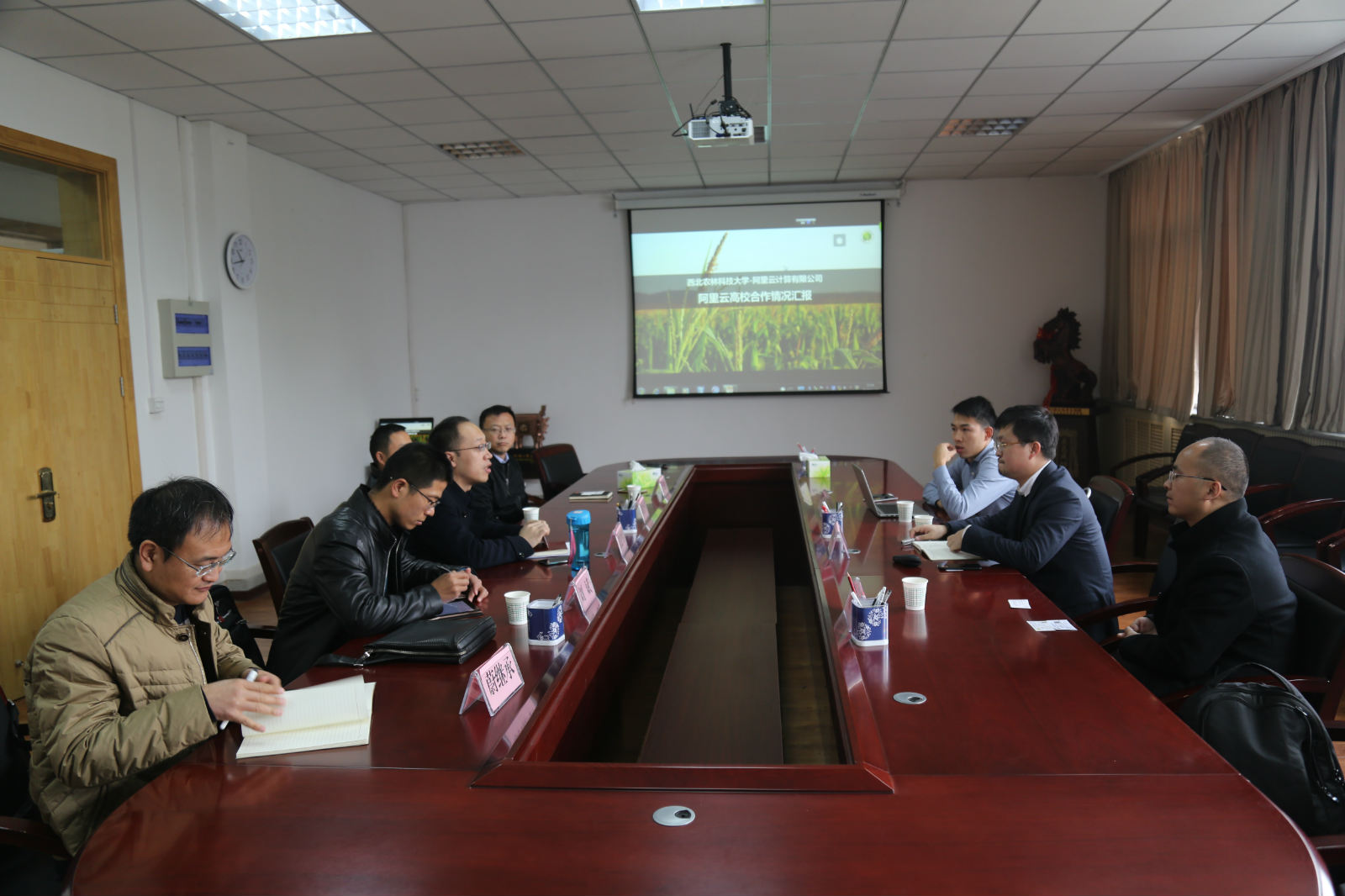 为了适应社会发展需求,进一步做好大数据人才培养。应公司邀请,11月29日上午,阿里云计算有限公司西安行业总监程吉星一行3人来院洽谈校企合作事宜。公司副经理(主持工作)张宏鸣、大数据课组教师刘全中、刘斌、蔚继承、于建涛参加了洽谈会。