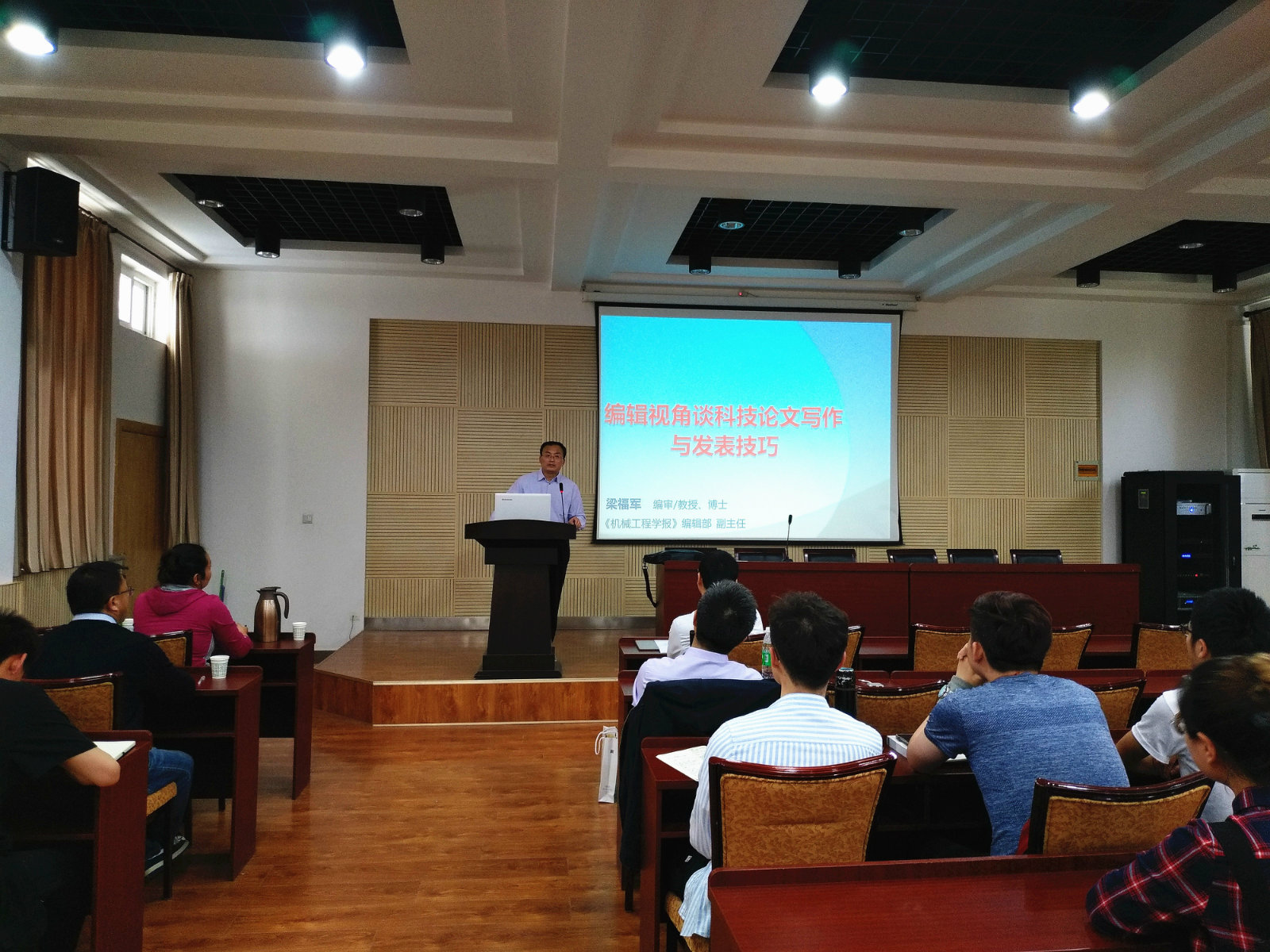 为帮助员工了解科技论文高质量写作与投稿技巧,4月19日下午,公司特邀《机械工程学报》编辑部副主任、国务院国家科技专家、北京邮电大学兼职教授梁福军教授在公司副203报告厅开展题为“编辑视角谈科技论文写作与发表技巧”的学术报告会,与公司员工共同分享和探讨高质量科技论文写作的注意事项。本次报告会由公司副经理胡少军主持,2017级、2018级研究生共同参与。