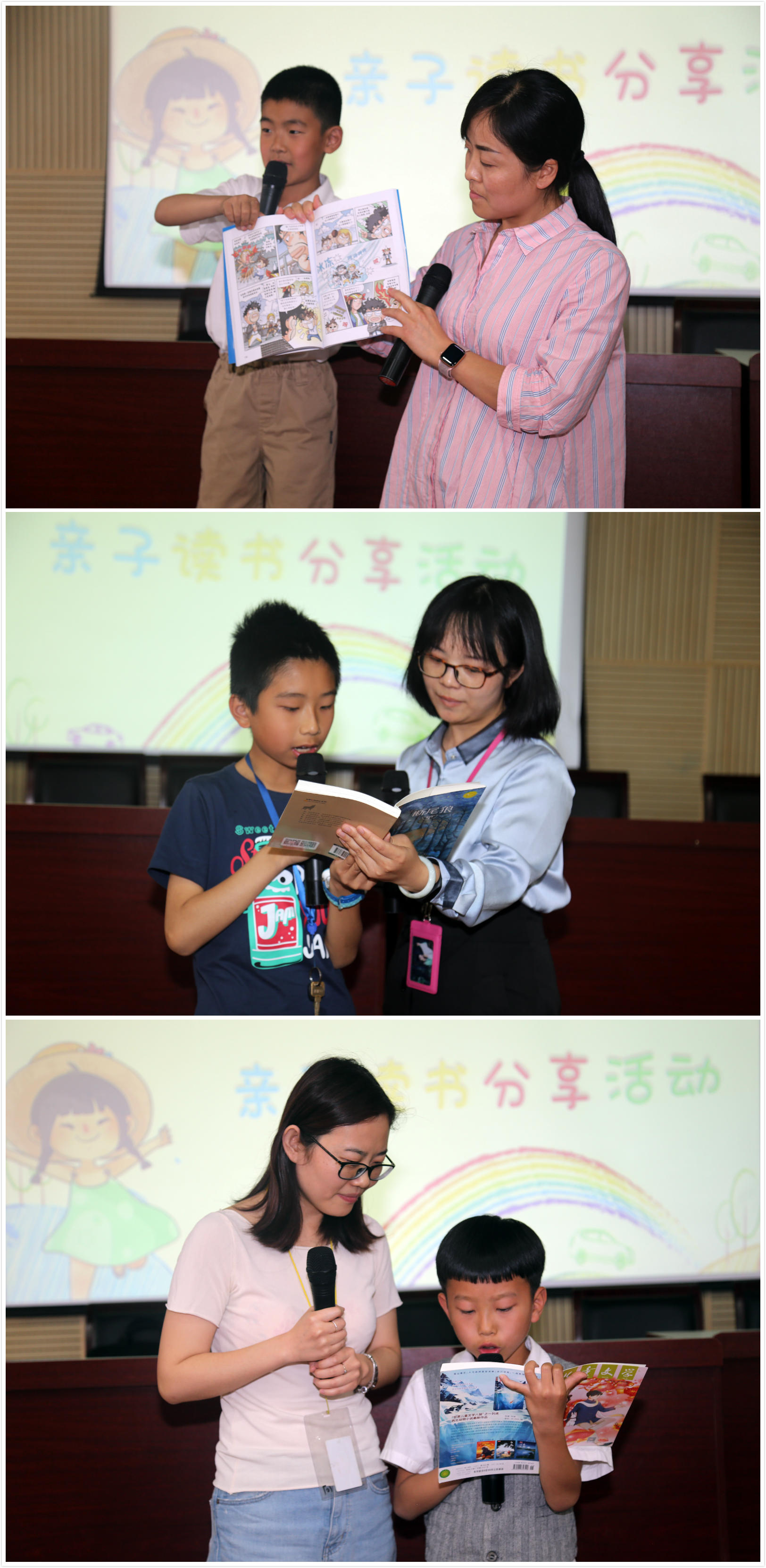 展示完丰富的才艺,孩子们拿起了自己最喜欢的书和爸爸妈妈一起给其他大朋友和小朋友进行分享。稚嫩的童声为大家讲述书中精彩纷呈的故事,展示书中妙趣横生的插图。小朋友们在阅读和分享中开阔视野、增长知识、陶冶情操。