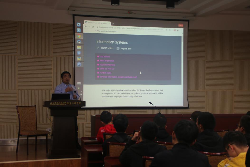 在宣讲会上王思同总经理通过与同学分享多年从事教育事业的经典案例以及从国际化视角对专业未来发展进行分析展开本次宣讲。