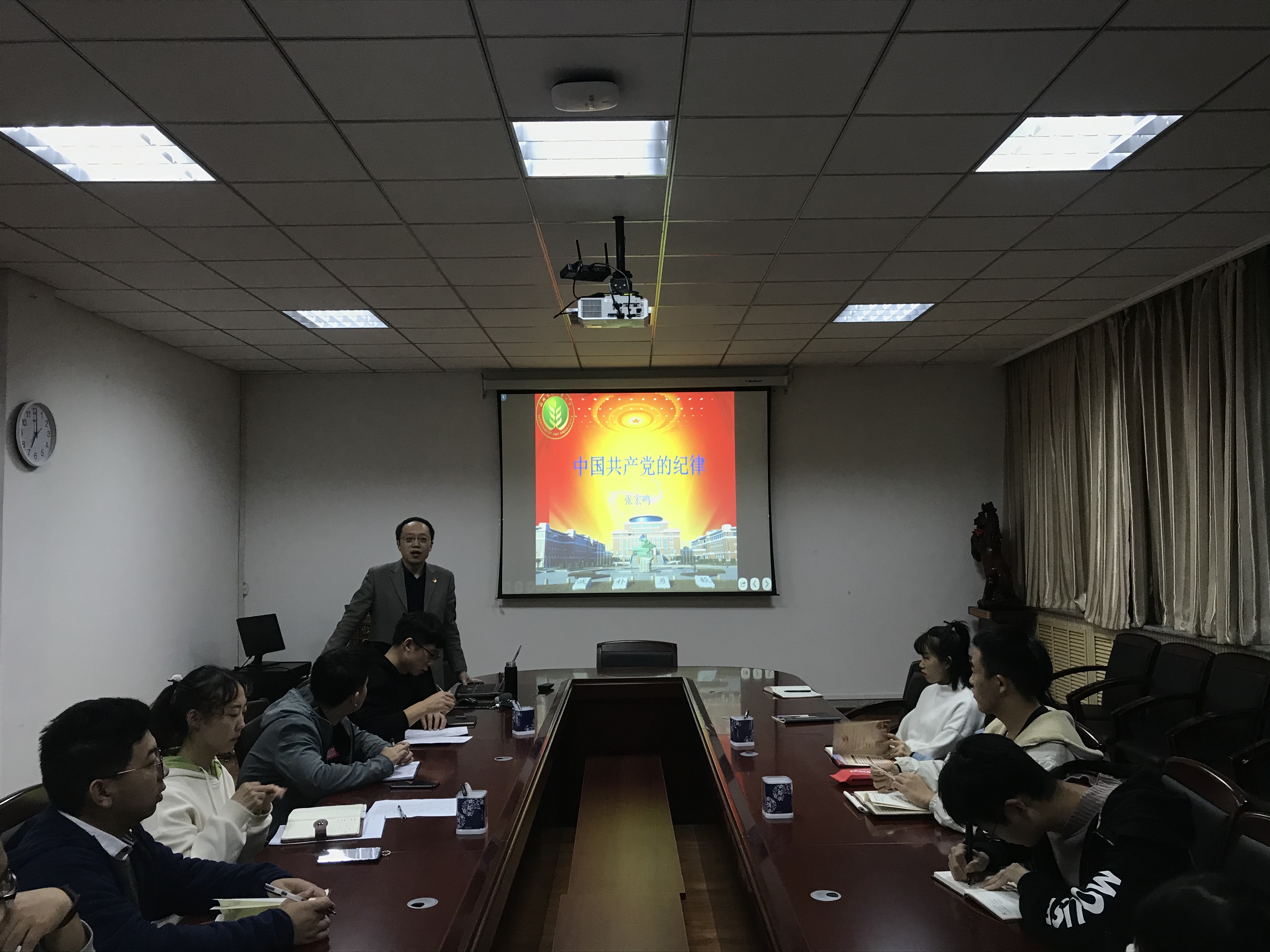10月29日晚,副经理张宏鸣同志作为研究生第一党支部联系人,以“中国共产党的纪律”为主题为研究生第一党支部全体党员同志、发展对象、入党积极分子上了一堂发人深省的党课。