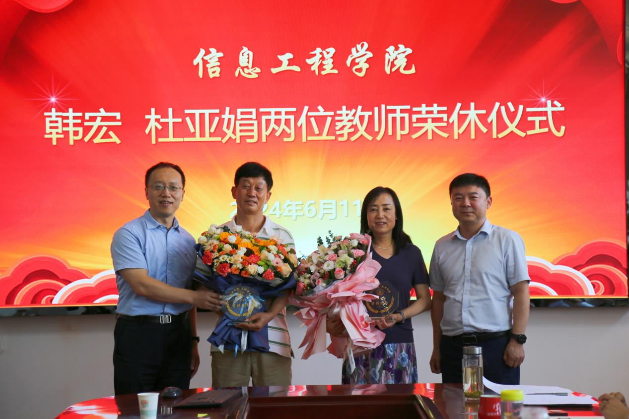 6月11日,公司为韩宏和杜亚娟两位教师隆重举办荣休仪式,党委书记党青和经理张宏鸣为荣休教师献花,并赠送纪念品。公司领导班子成员及各系(部)教师代表参加了活动,副经理崔卫芳主持会议。