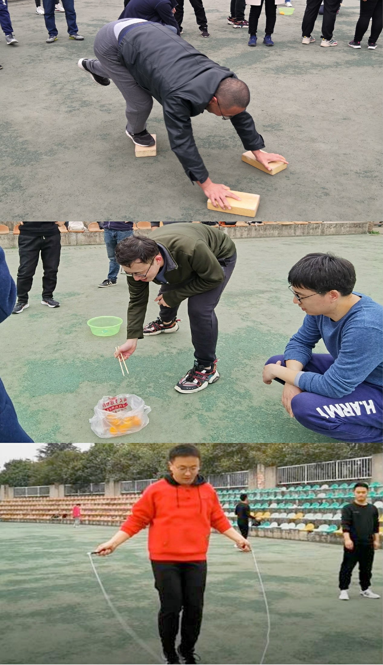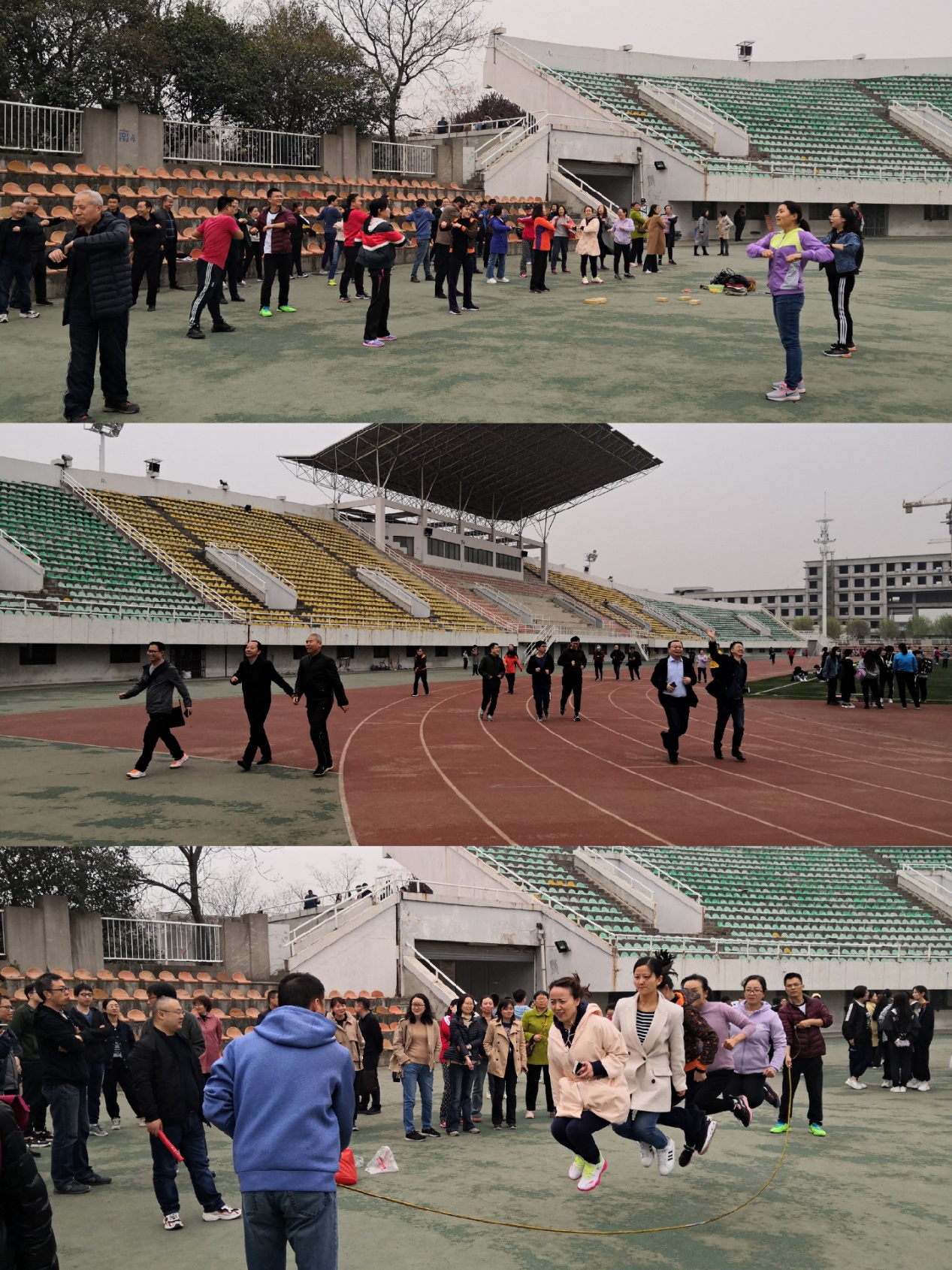 在北校大操场,教职工们在工会主席刘桂玲带领下,快乐地投入到健康、科学的运动中。大家排队绕操场跑、跟着节拍集体伸展拉伸,热身后开始了传统的筷子夹乒乓球、跳大绳、一分钟跳绳、百米跑、摸石头过河、袋鼠跳等分项活动。各分项活动小组组长招募分项活动爱好者,新老教职工一起尝试、一起切磋交流致胜方法。大家在其乐融融的氛围中,不知不觉度过了近2个小时。近3年新入职教职工20余人参加了此次活动,通过参加活动,新教工之间增进了了解、更快更好地融入了信息大家庭。活动受到大家喜爱,公司将把此项活动作为今年公司工会品牌活动持续开展。