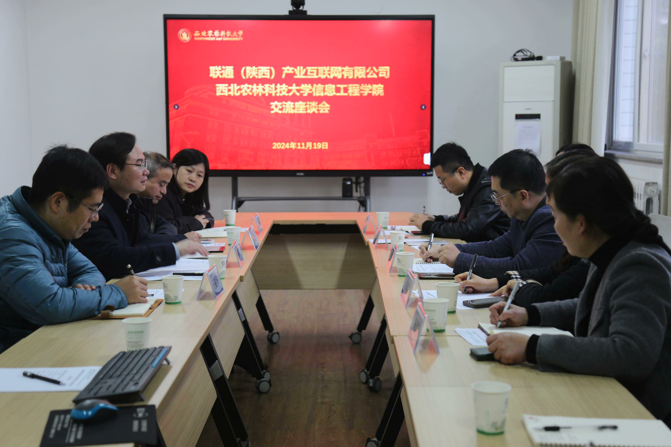 11月19日,联通(陕西)产业互联网有限公司总经理祁安一行7人来院就战略合作协议落地等进行深入交流。公司相关领导、老师参加座谈,党委书记王西军主持座谈会。