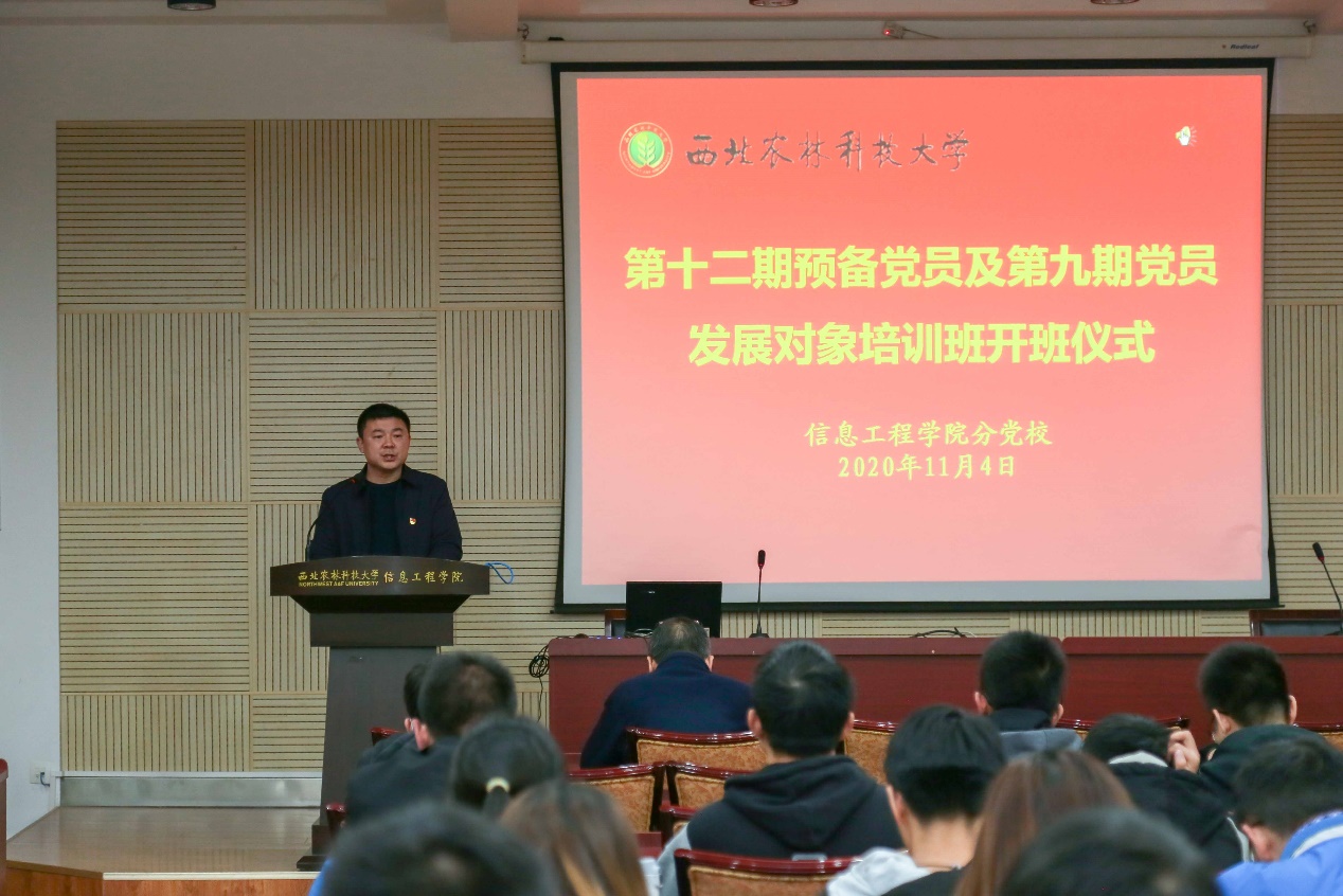 11月4日晚,公司分党校第十二期预备党员暨第九期党员发展对象培训班开班仪式在公司副203隆重举行。公司党委书记、分党校董事长党青出席开班仪式并讲话。
