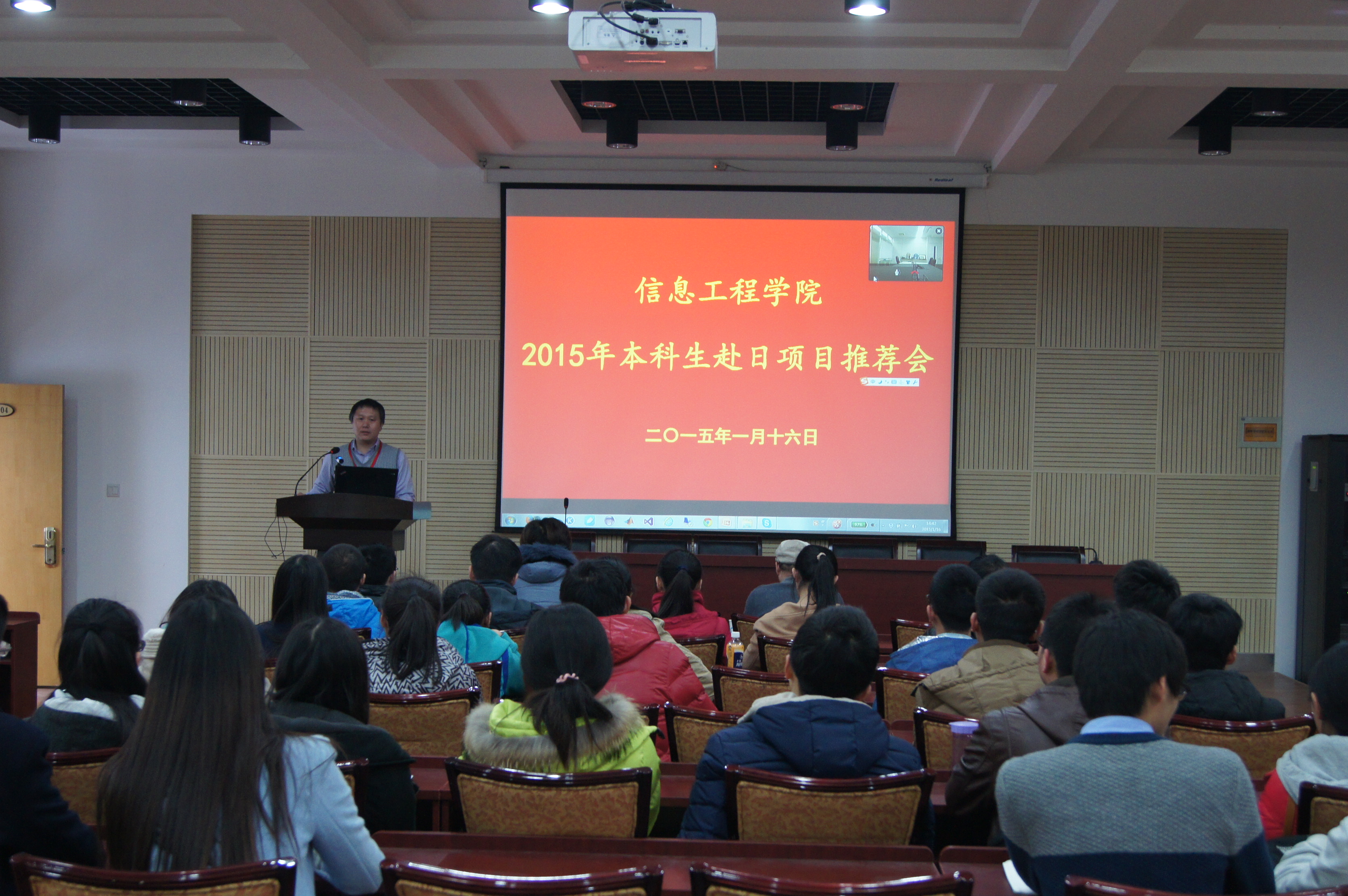 1月16日下午,公司在副203会议室召开了2015年本科生赴日项目推荐会,会议由张阳副经理主持。日本株式会社UCL董事长陈海波等5人、2014年派出的10名员工、公司教学管理人员及对项目感兴趣的在校生参加了会议。会议采用视频会议与现场会议相结合的形式。
